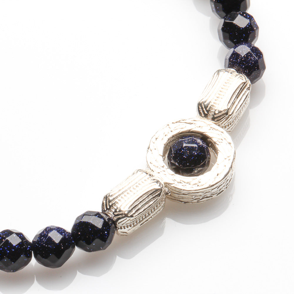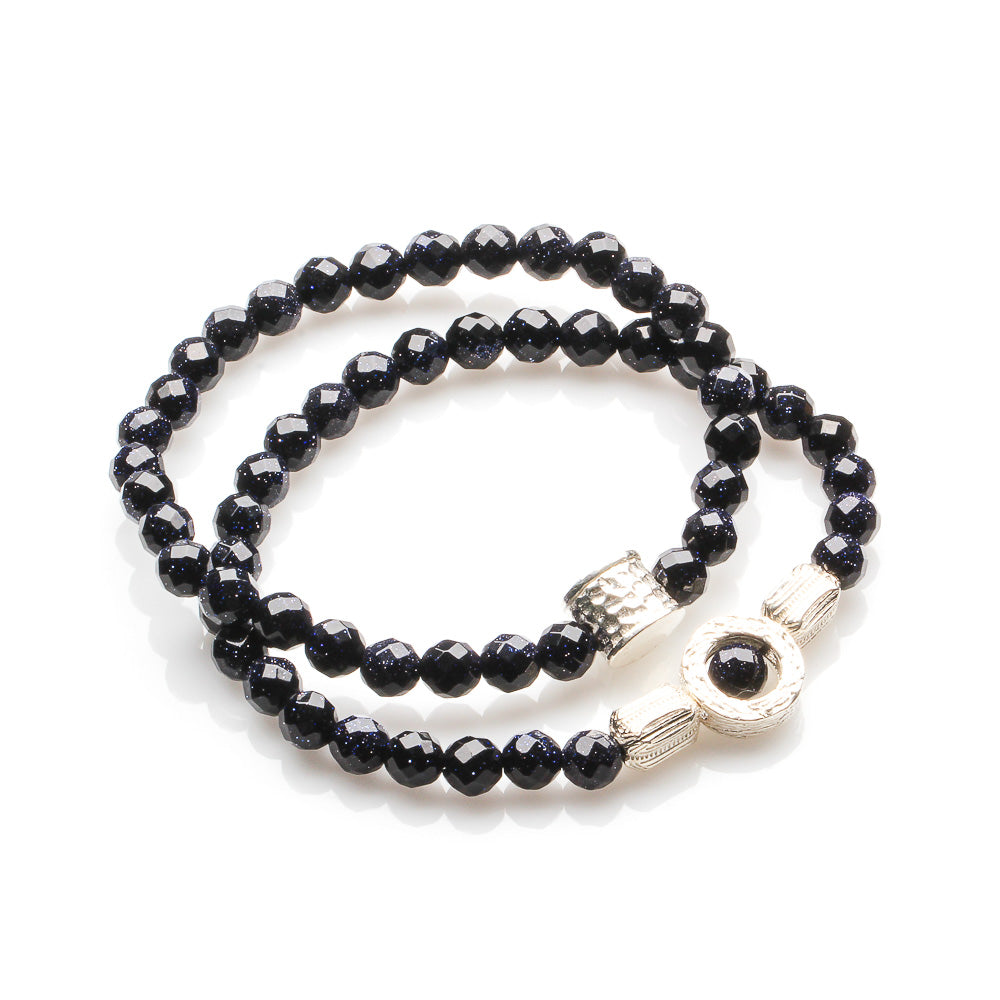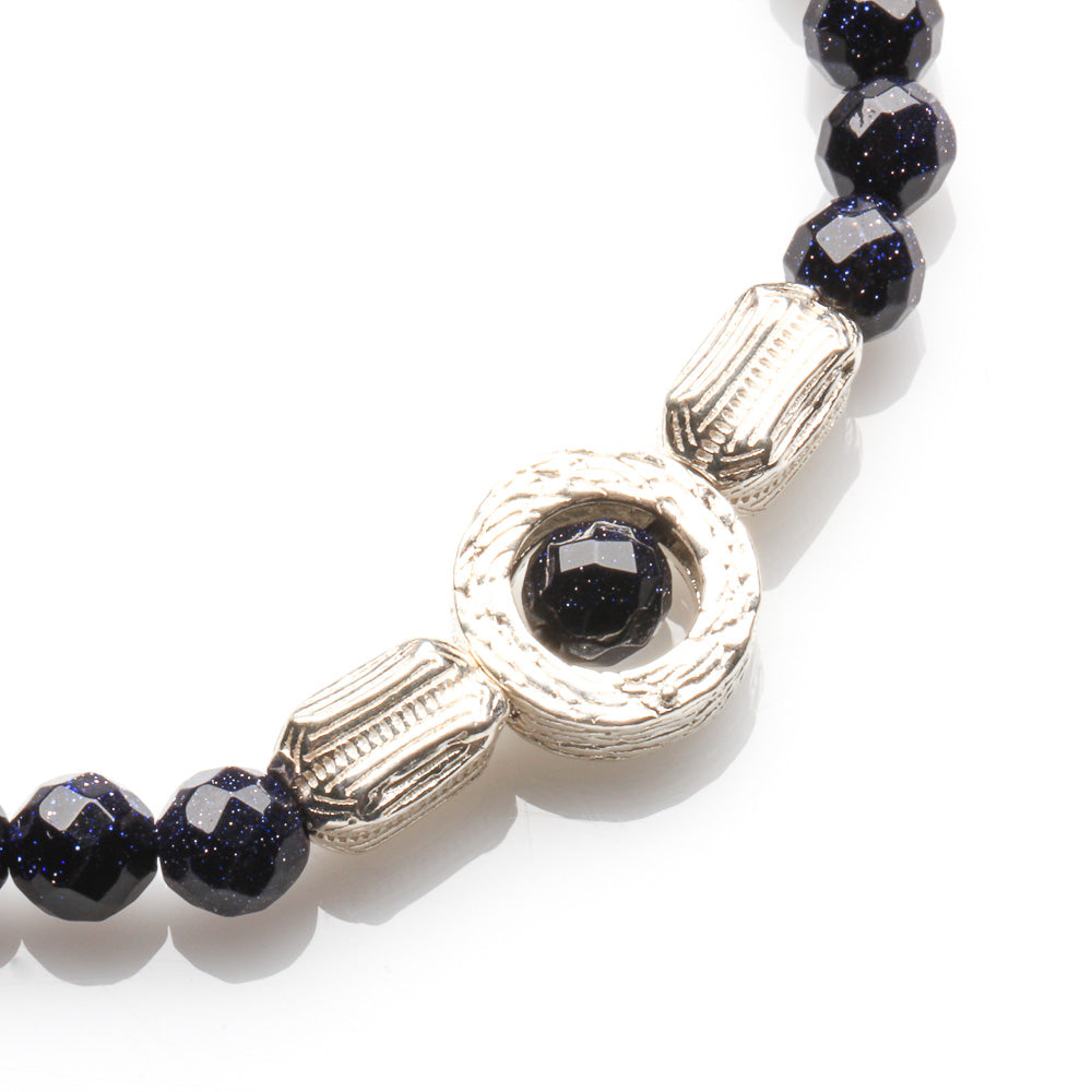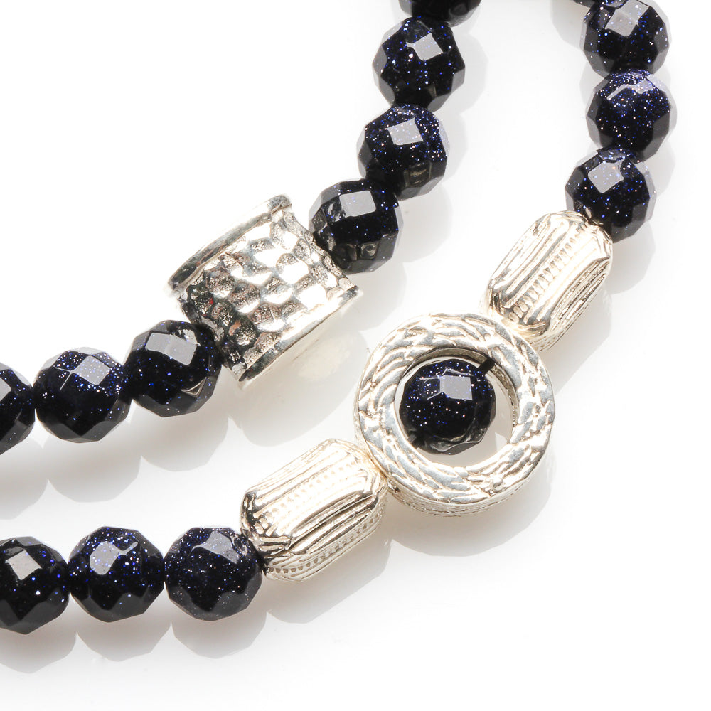 We used: 6mm Facetted Blue Sandstone Beads and 925 Silver Components with Elastic String