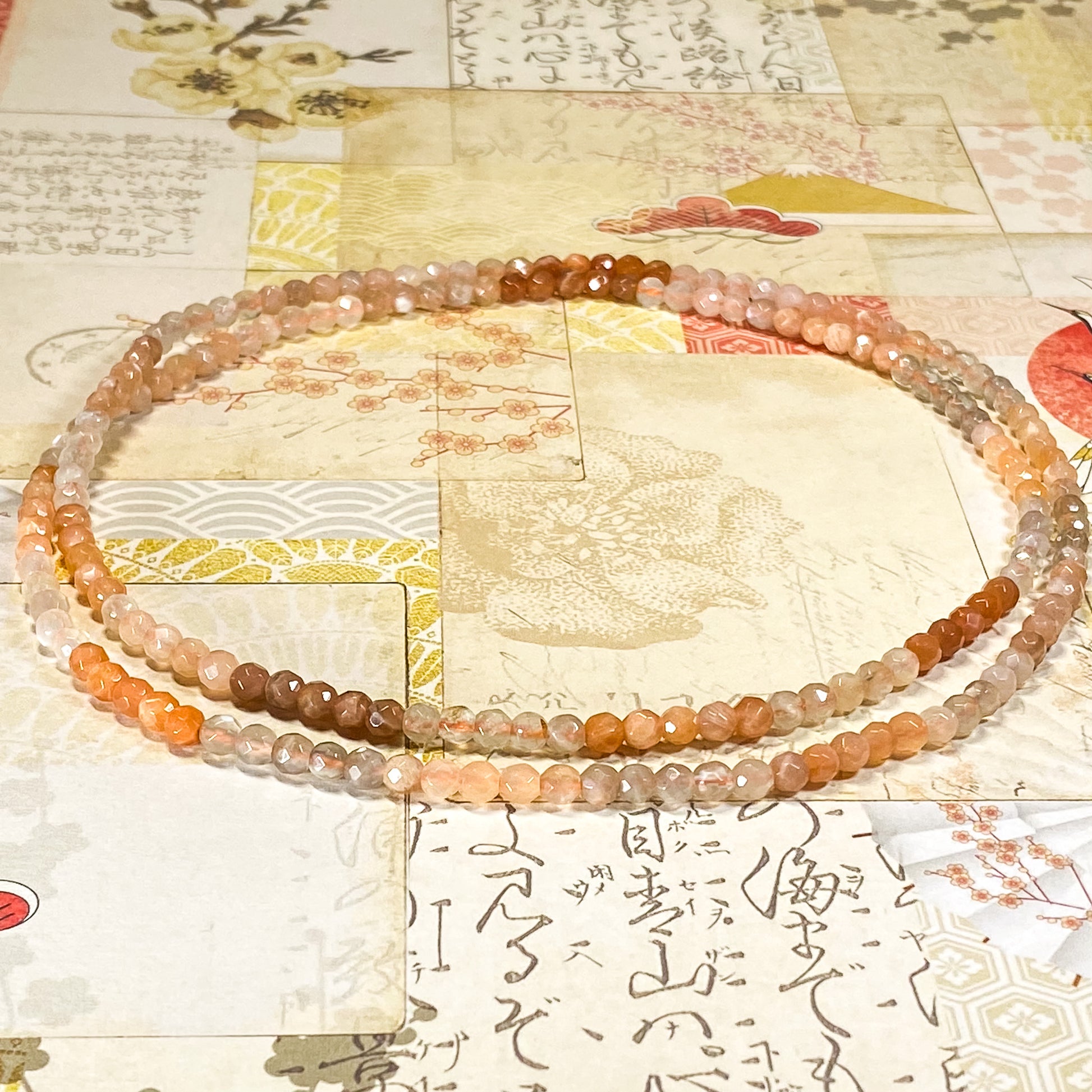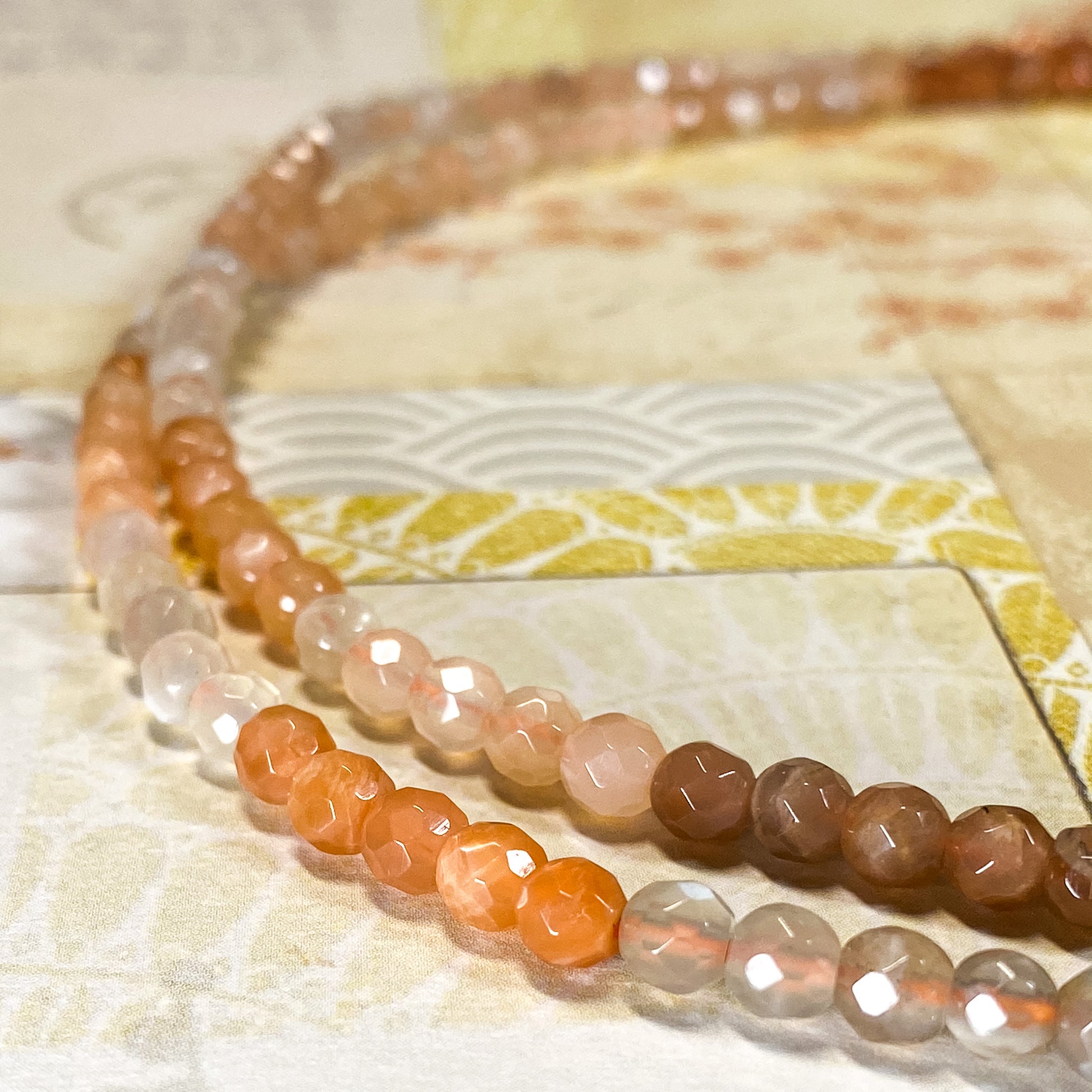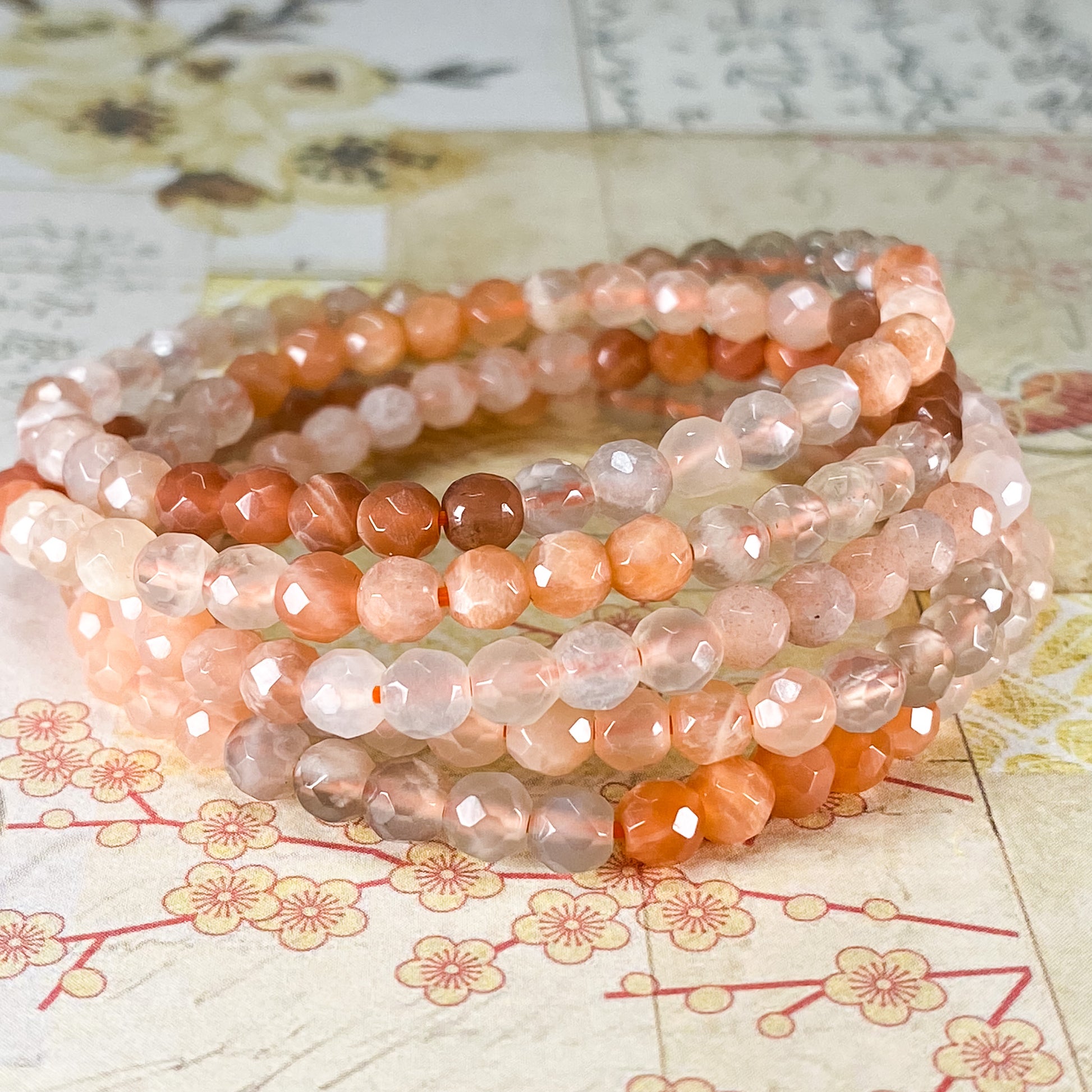 We used: 4mm Facetted Three Colors Moonstone Beads with Elastic String, Multiple Strands Design That Can Also Be Worn As Necklace