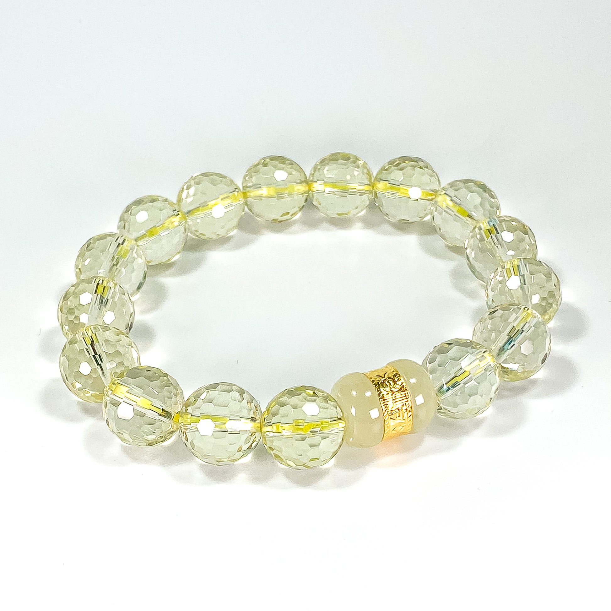 12 MM FACETED LEMON CITRINE WITH JADE DRUM BRACELET