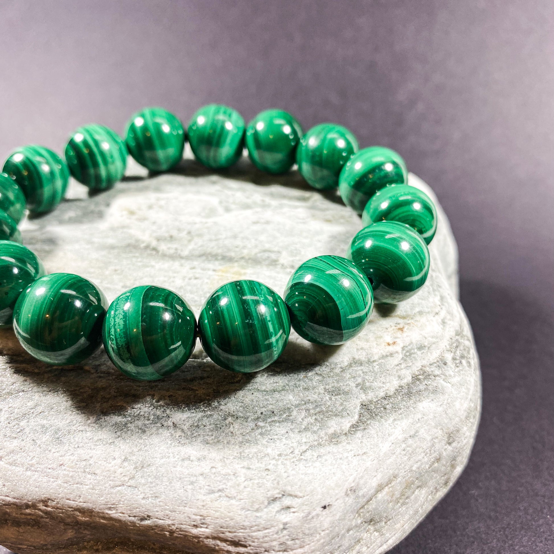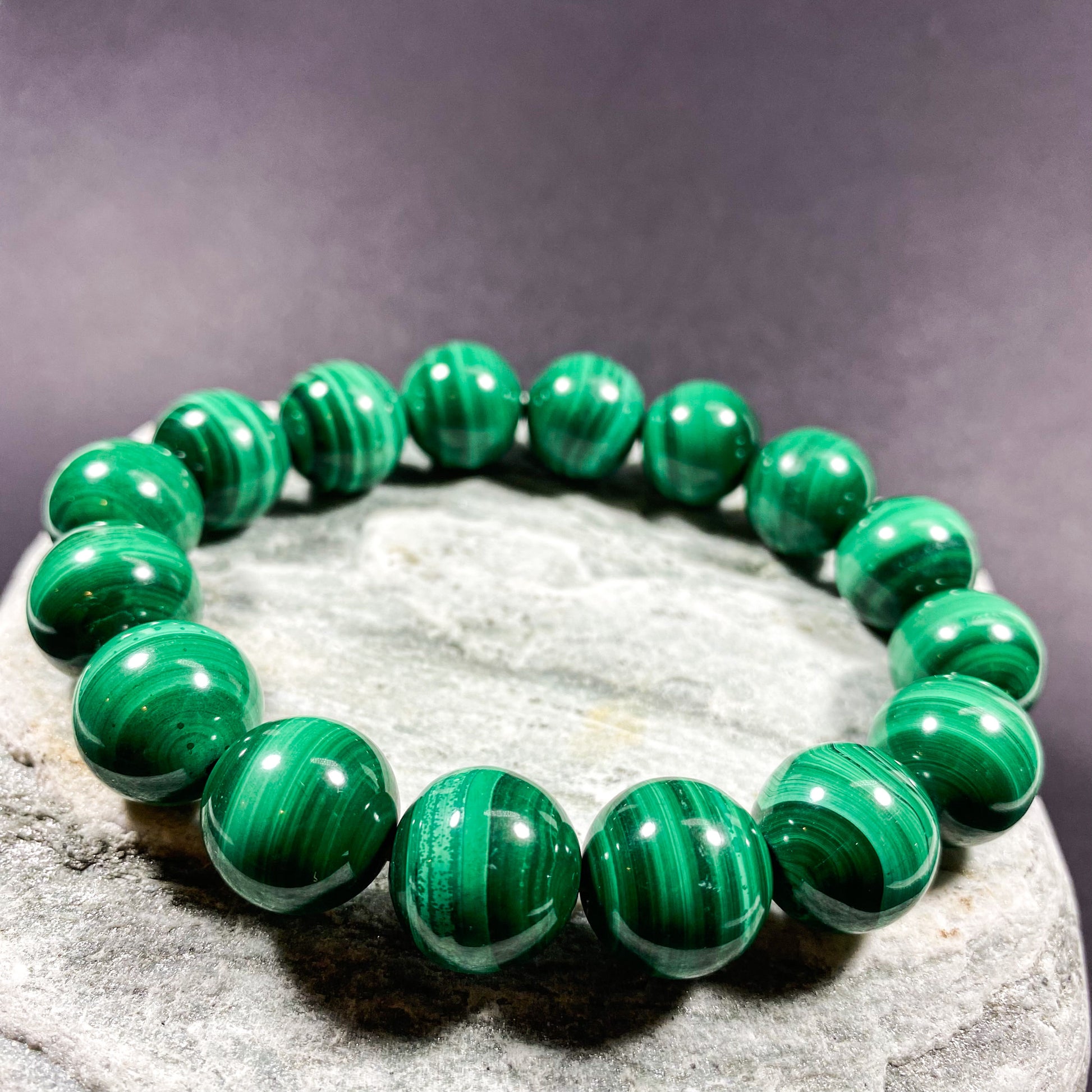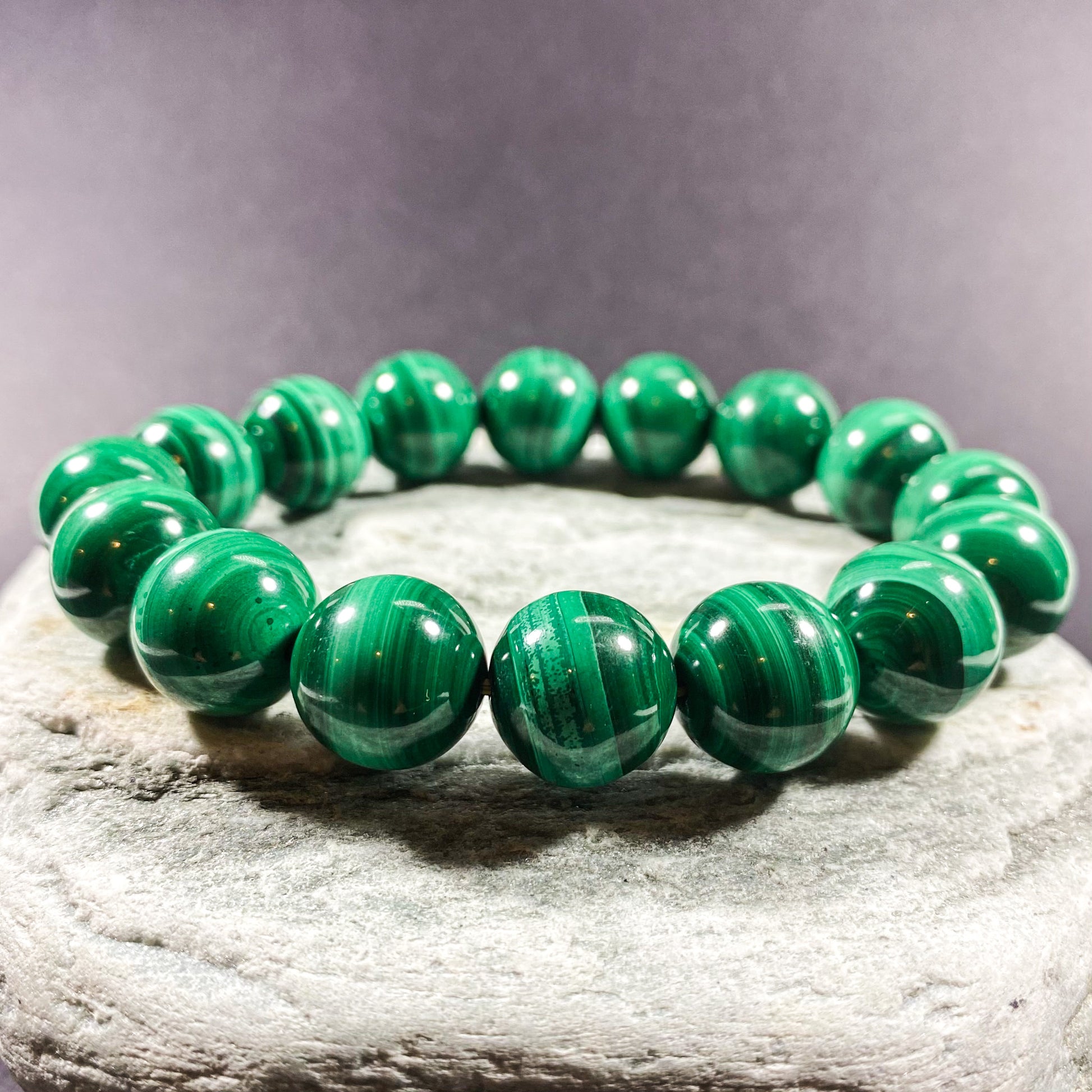 14MM MALACHITE BEADS CRYSTAL BRACELET