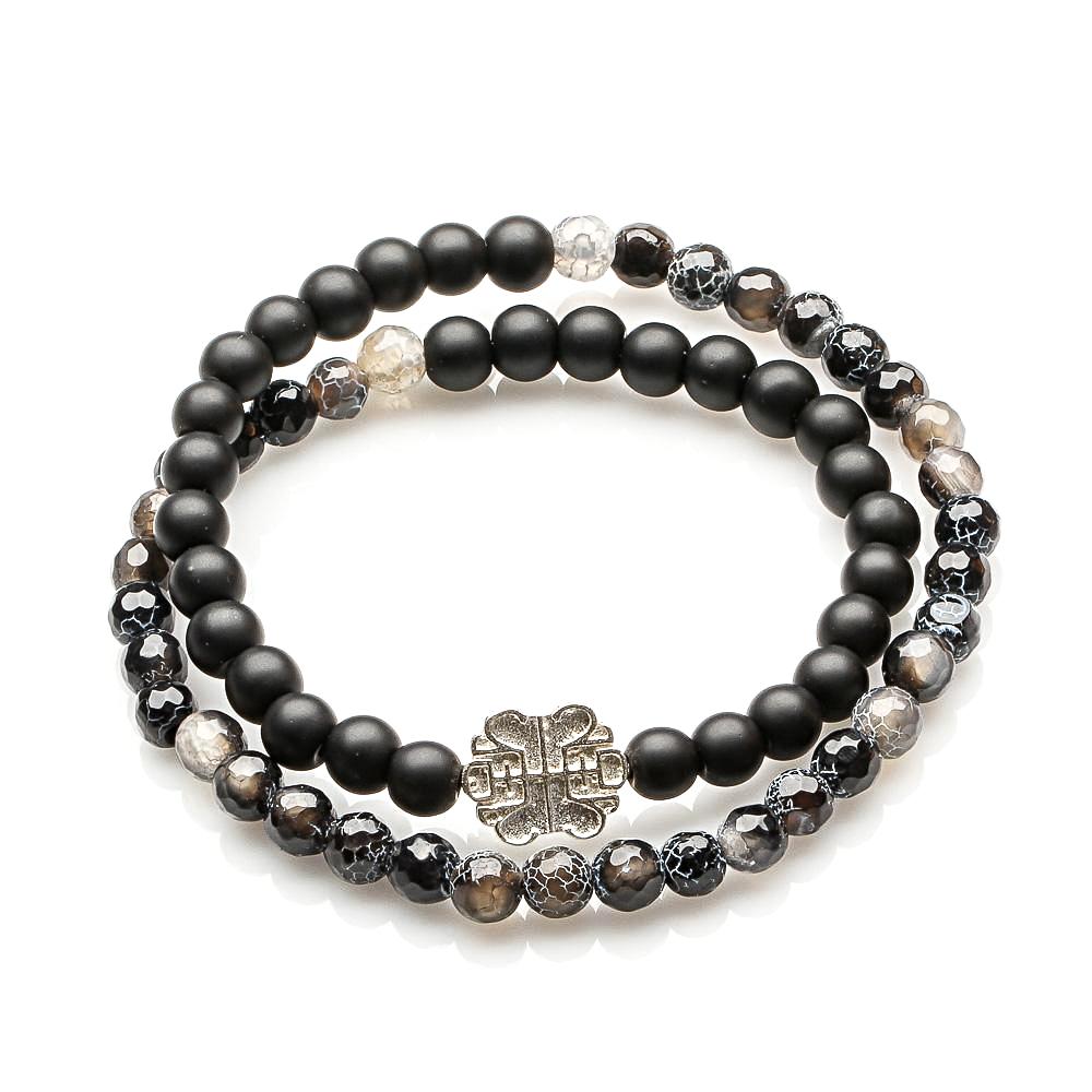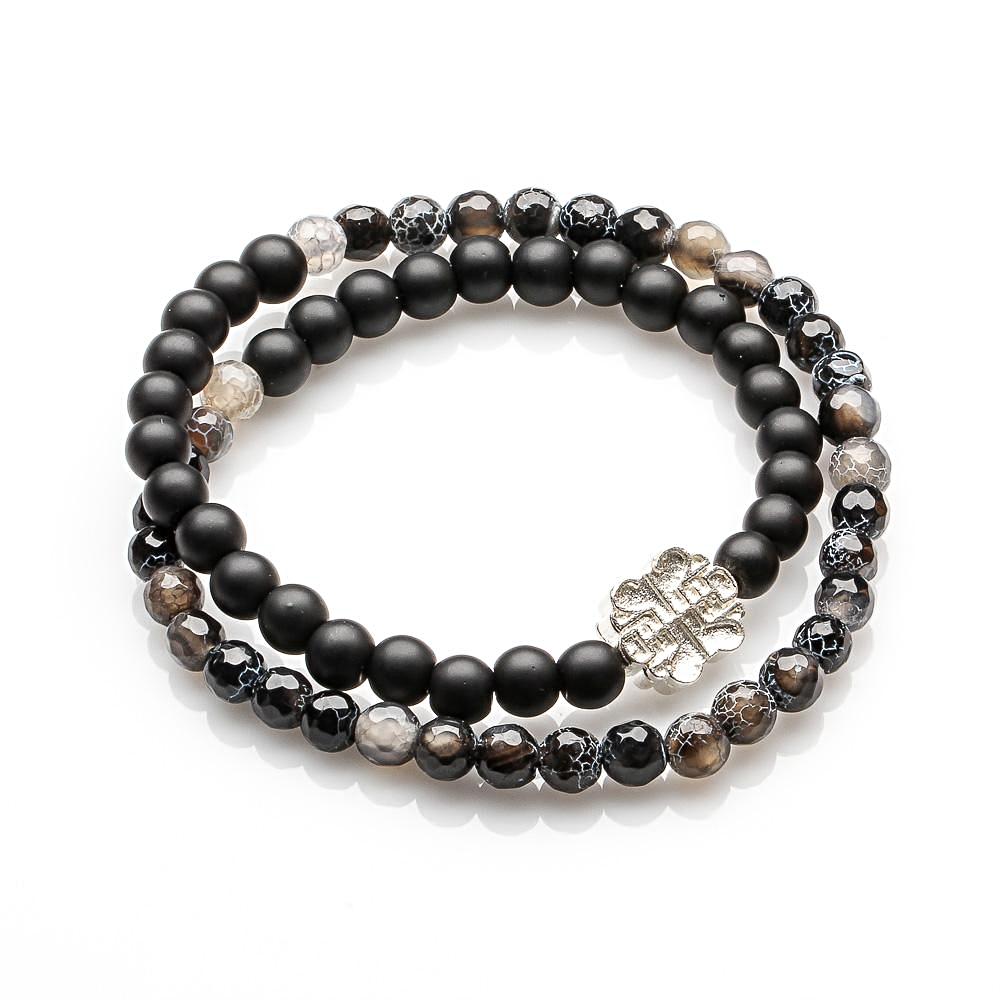 We used : 6mm Matt Agate and 6mm Vein Agate Beads, and 925 Silver Satin Finish Longevity with Elastic String, Double Strands Style