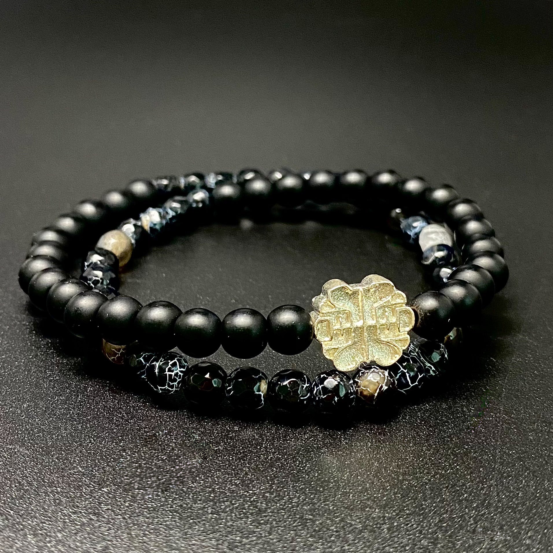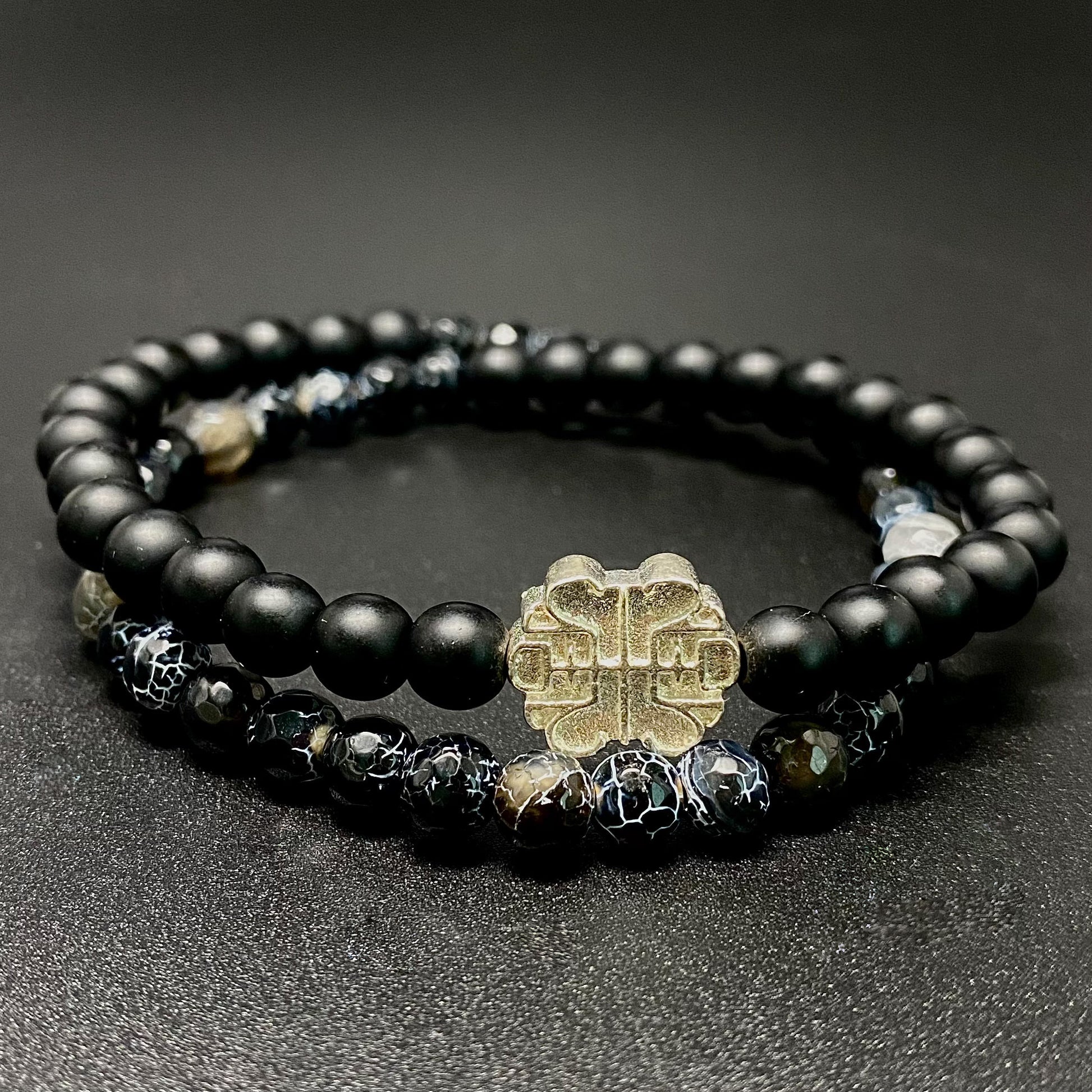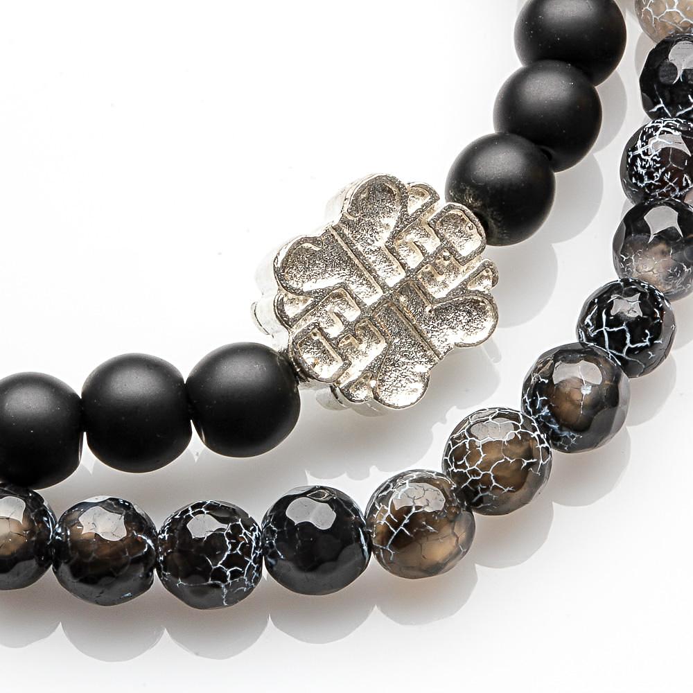 AGATE BEADS, 925 SILVER LONGEVITY SYMBOL BRACELET