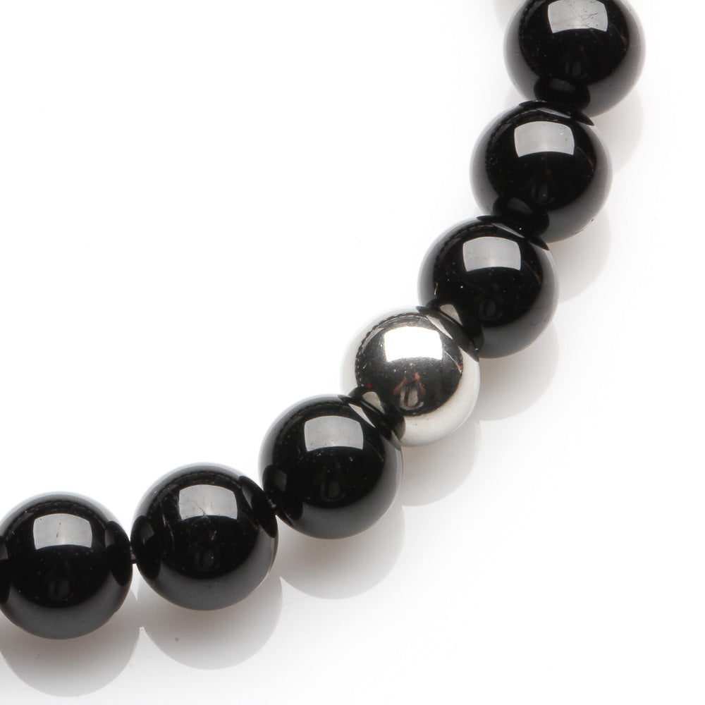 We used: 8mm Black Tourmaline Beads and 8mm Stainless Steel Bead with Elastic String