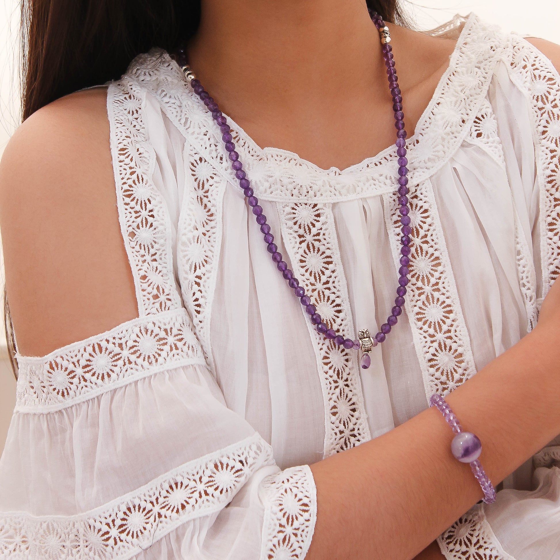 We used: 15mm Chevron Amethyst With 6mm Facetted Hamburger Amethyst Bracelet