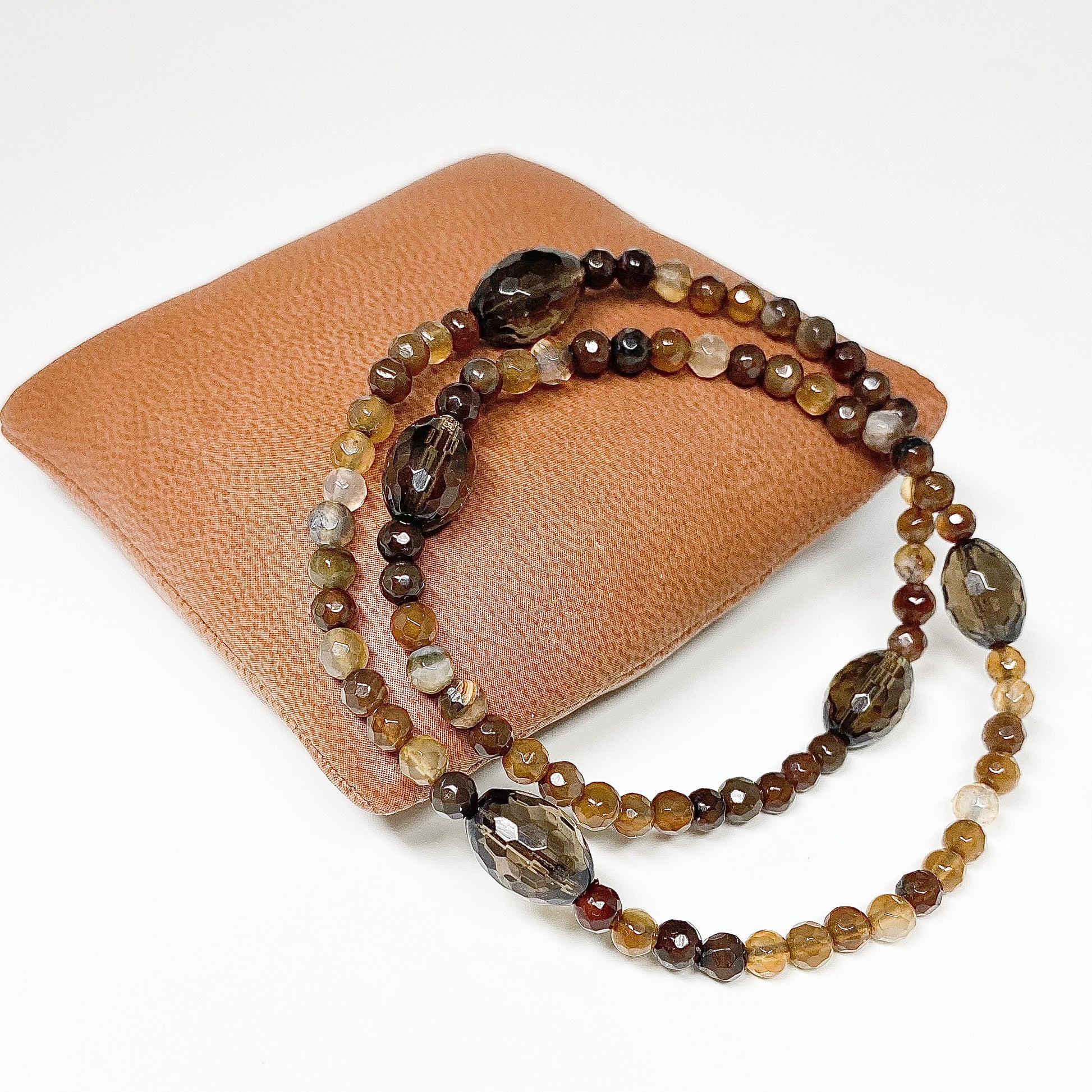 BROWN AGATE WITH SMOKEY QUARTZ DOUBLE STRAND BRACELET