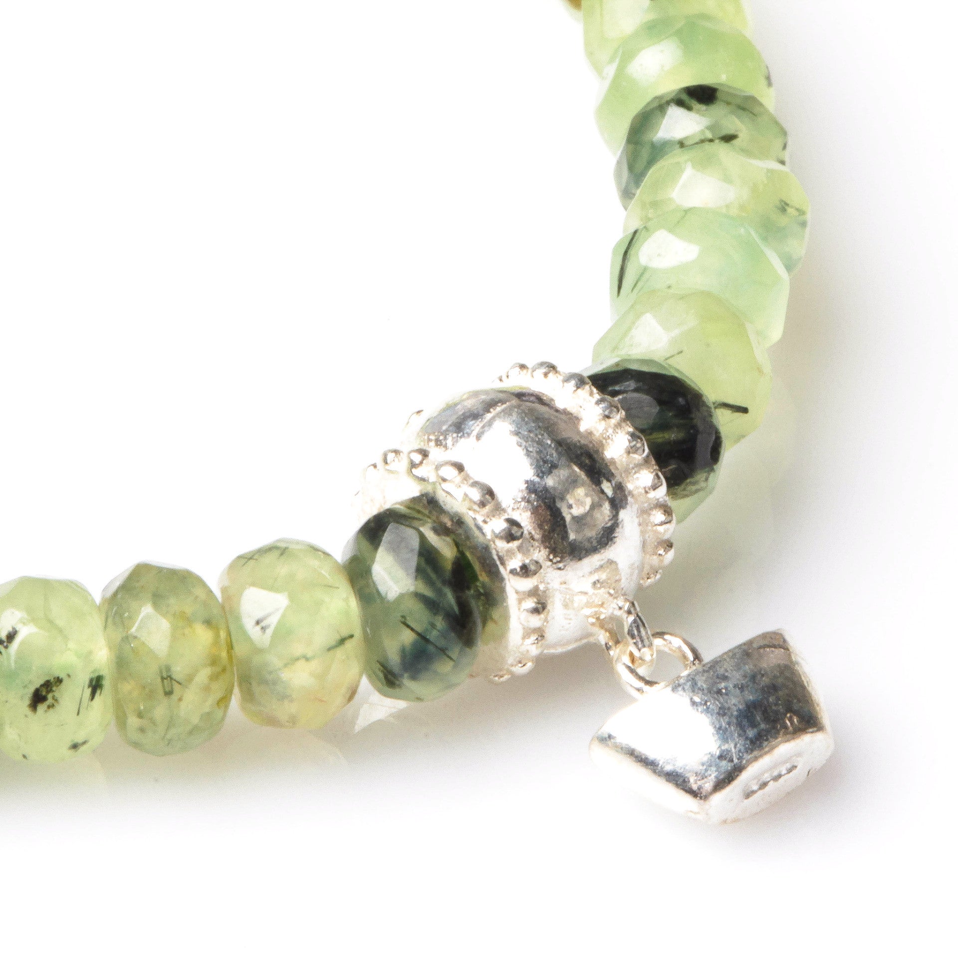 We used : 6mm Faceted Green Prehnite with 925 Silver Ingot Charm and Elastic String.