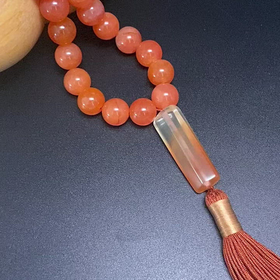 10MM CARNELIAN, RABBIT HAIR PHANTOM PRAYER BEADS