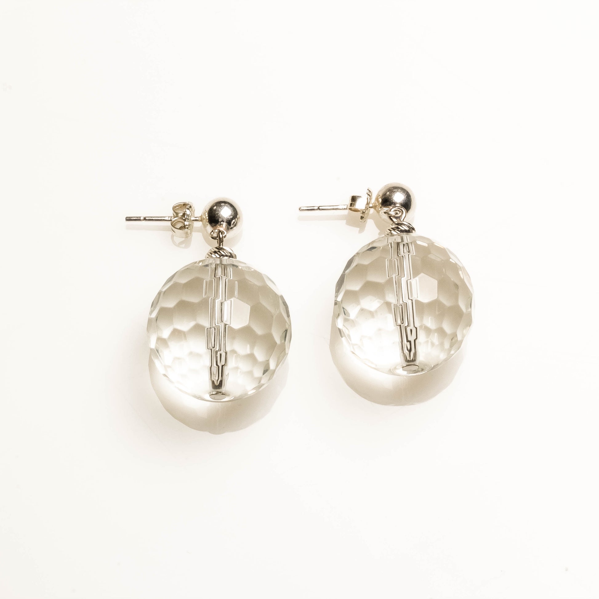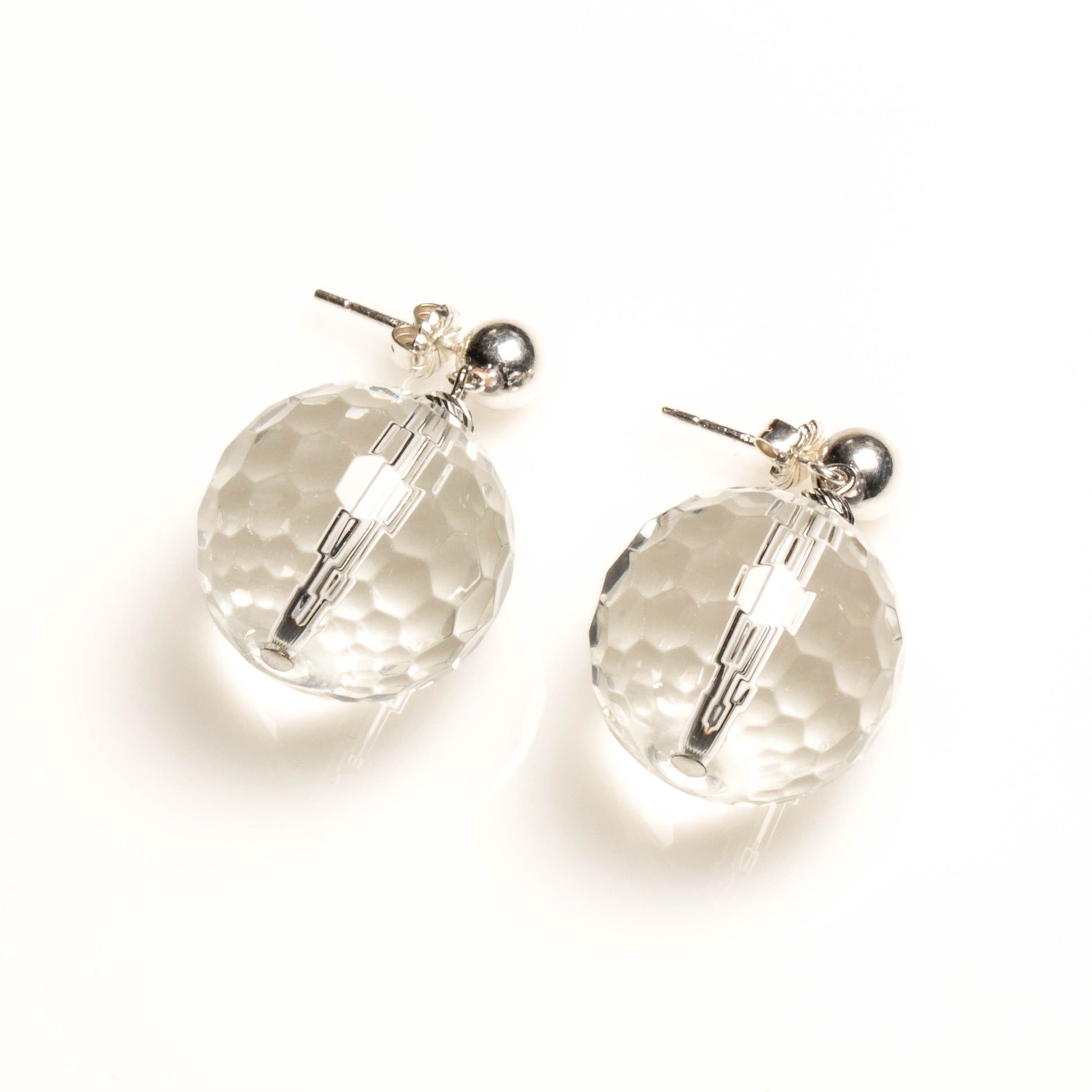 20MM FACETED CLEAR QUARTZ WITH 925 SILVER EARRINGS
