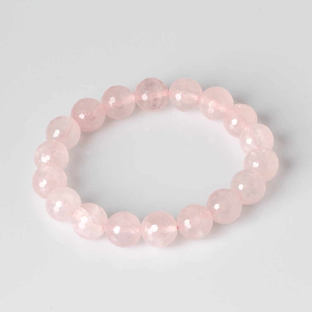 12MM FACETED ROSE QUARTZ CRYSTAL BEADS BRACELET