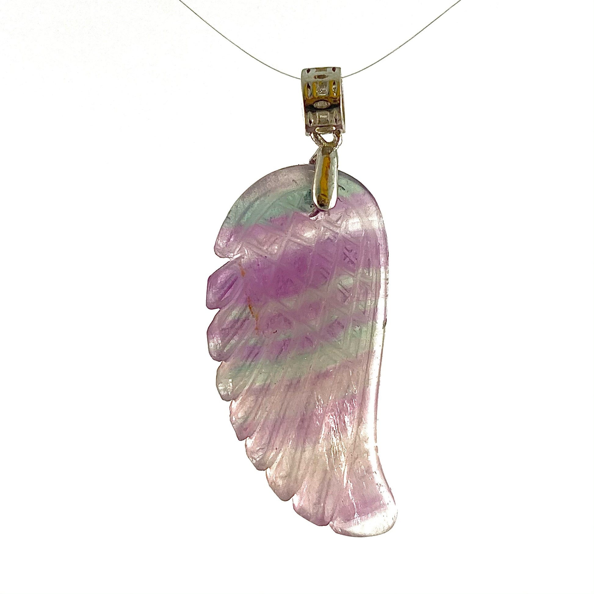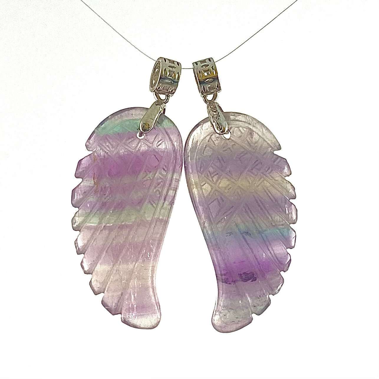 40 x 60MM FLUORITE ANGEL WING, 925 SILVER PENDANT