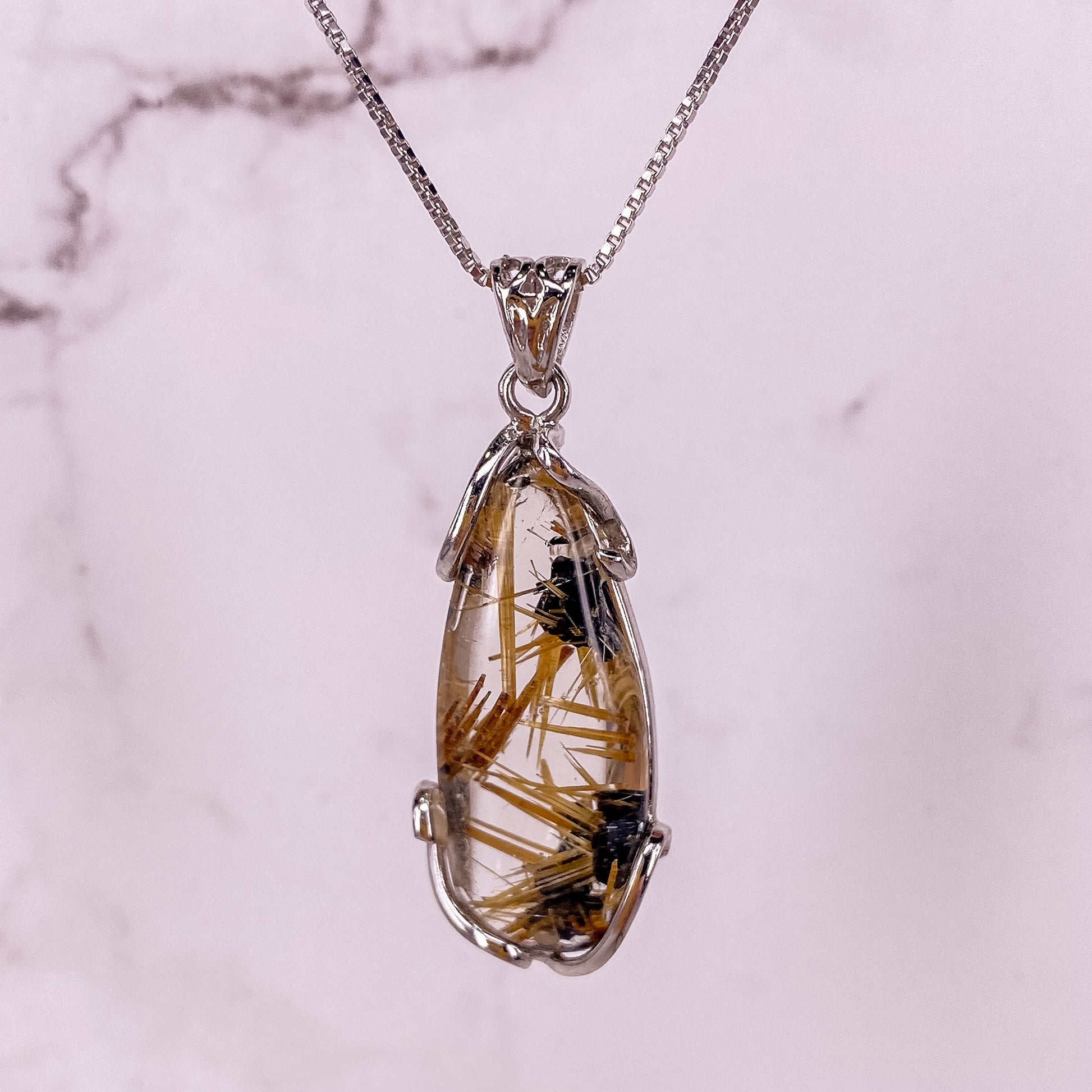 30 X 14MM GOLD RUTILATED QUARTZ PENDANT