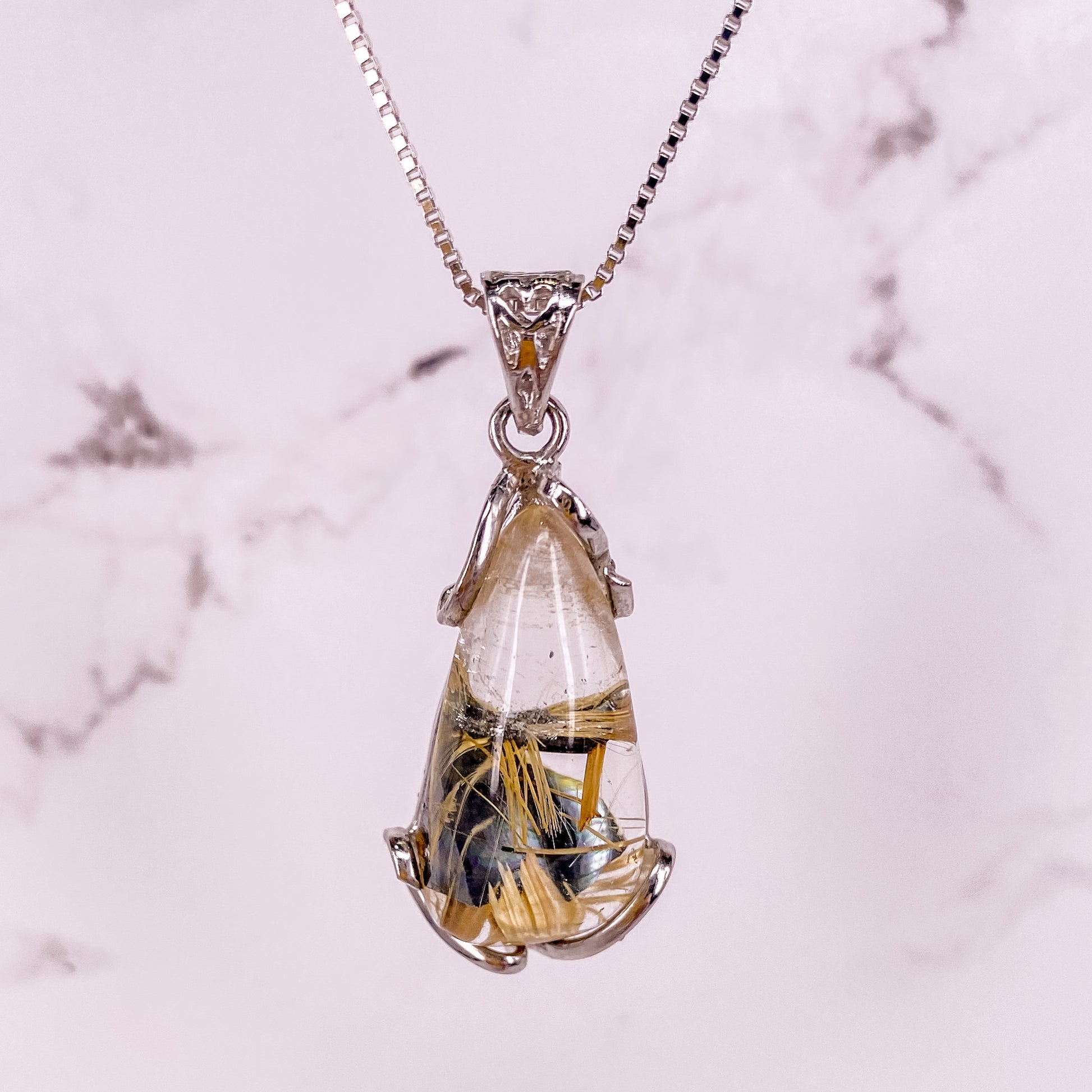 * Gold Rutilated Quartz attracts wealth and prosperity, boosts respect, power and influence, creativity, concentration and mental clarity, helps to understand the root of problems and finding the solution, relieves fears and protects against negative energy and physic attack. This is the crystal for management level personnel; bosses and business people, and people holding powerful position.(People who are relax and lack of drive should go for quartz with threads that are dense and thick, and people who are hot tempered, egoistic, tense and impatience should choose quartz with threads that are more sparse and thin)