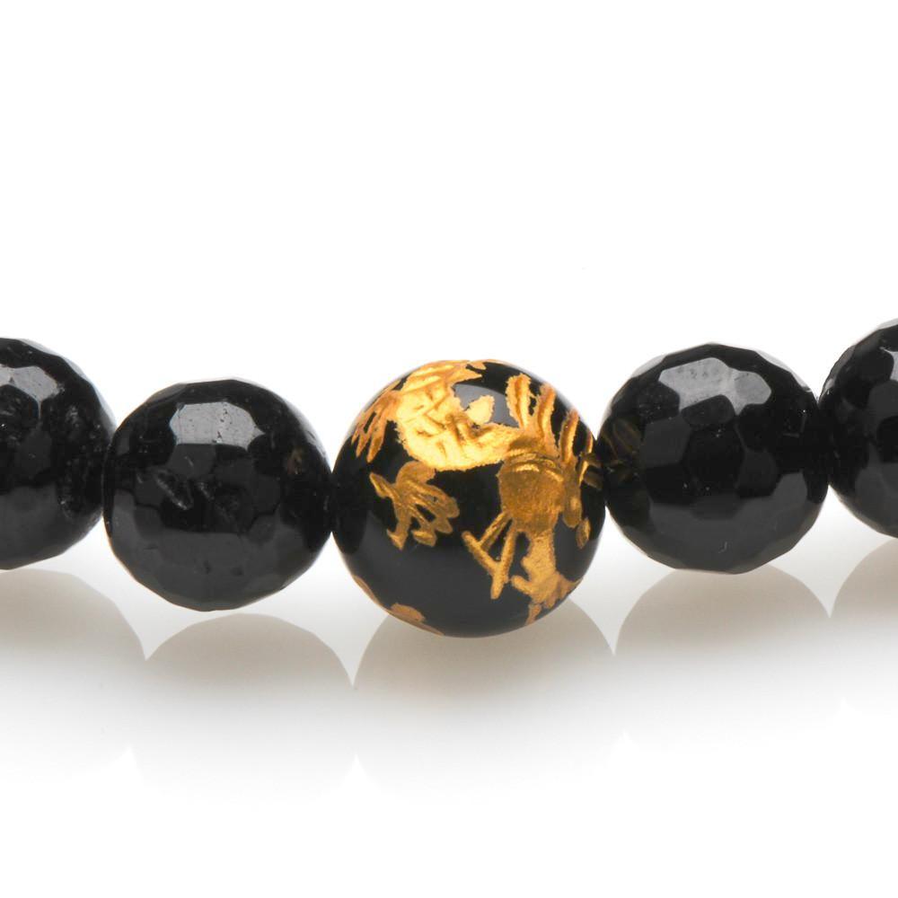 We used : 8mm Faceted Black Tourmaline and 10mm Gold Laser Dragon on Onyx Bead with Elastic String