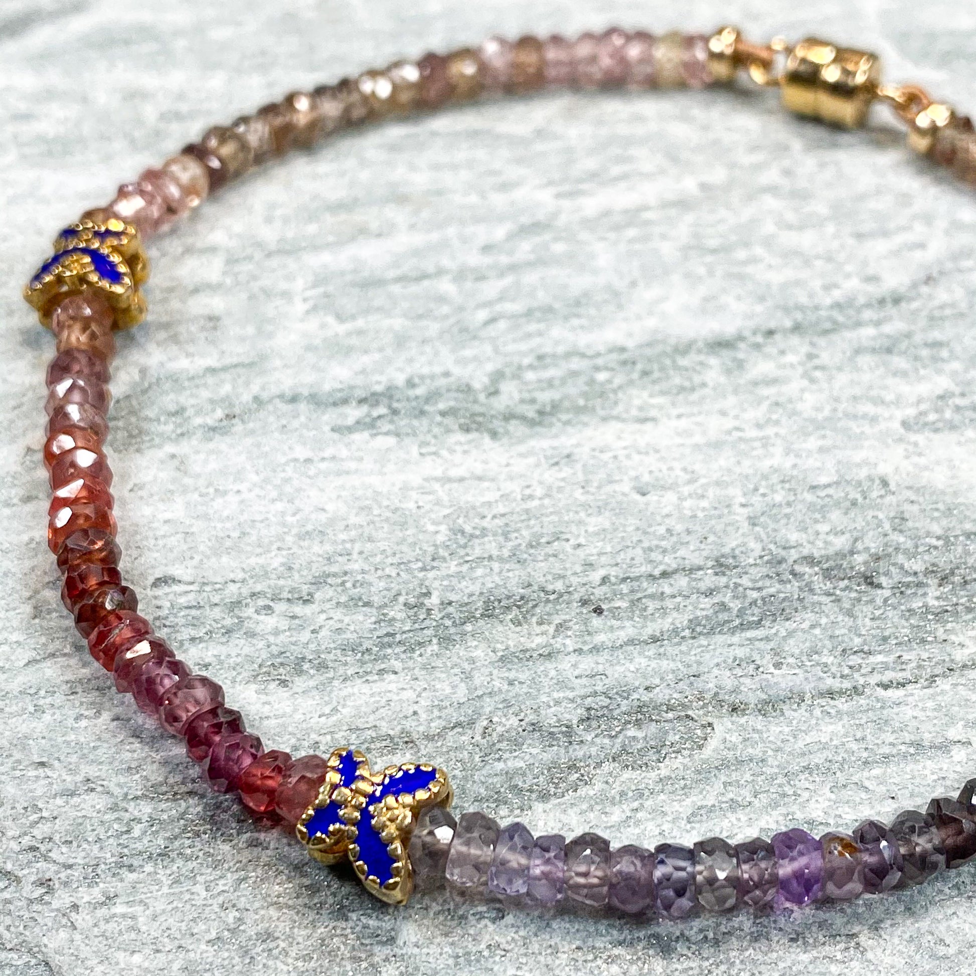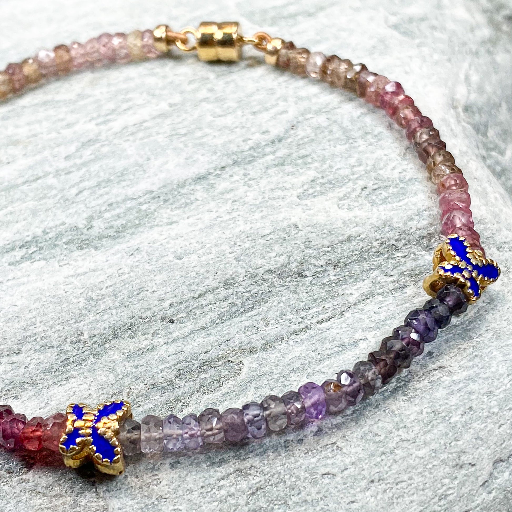 4MM SPINEL BEADS WITH 925 ENAMEL BUTTERFLY BRACELET