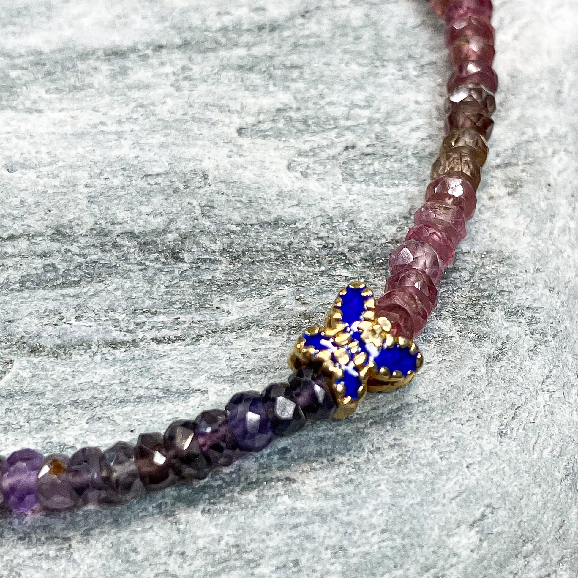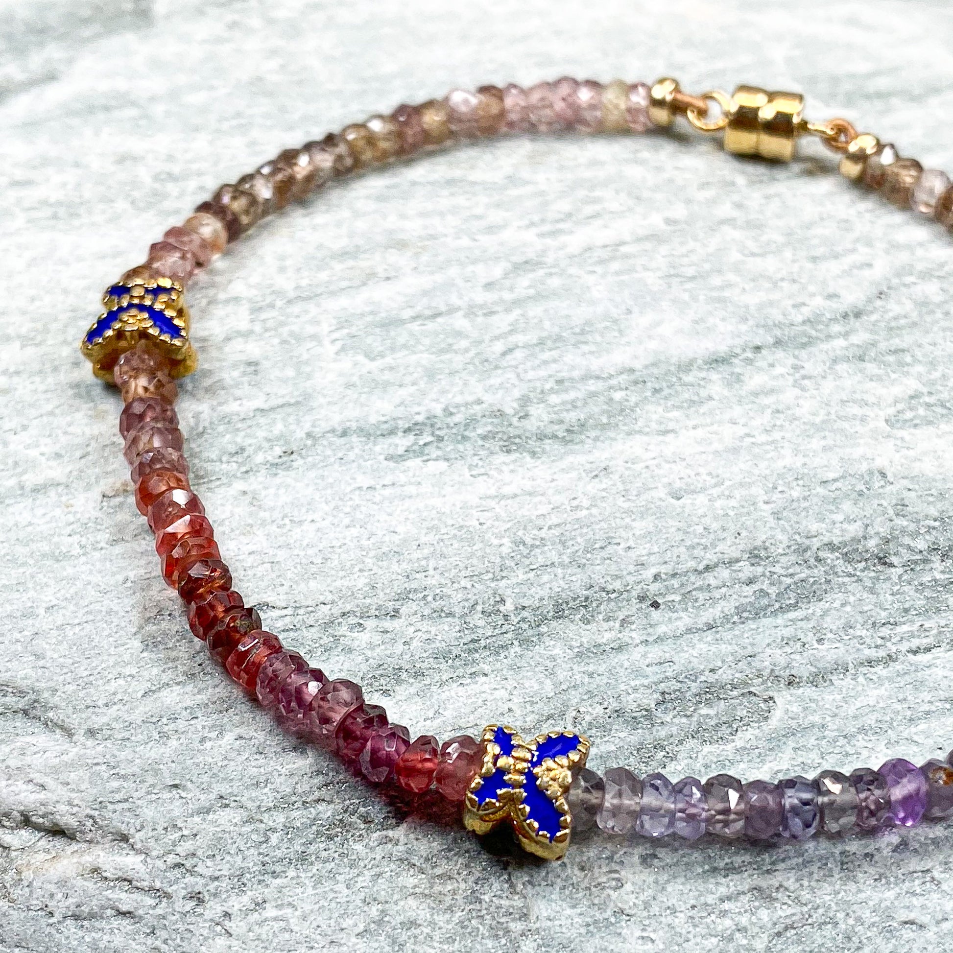 We used: 4mm Hamburger Spinel Beads with 925 Gold Plated Enamel Butterfly with 14K Gold Filled Magnetic Clasp