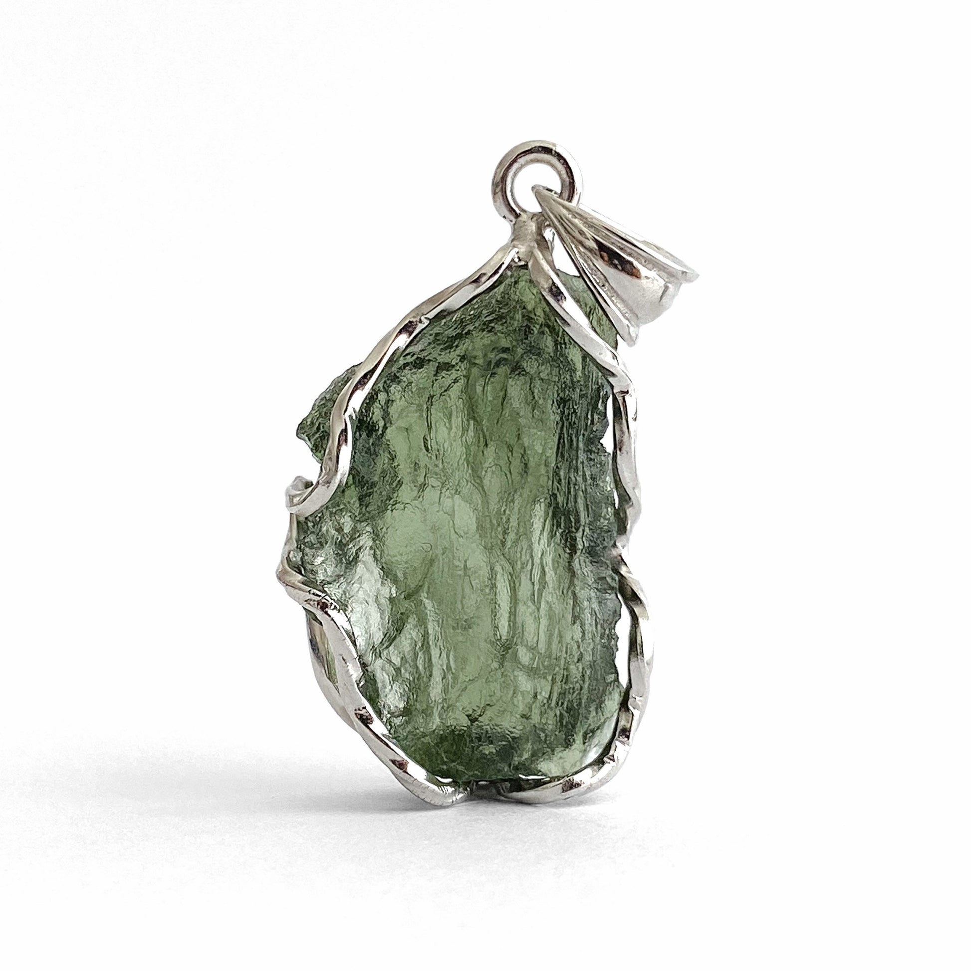 39MM x 19MM MOLDAVITE PENDANT WITH 925 SILVER