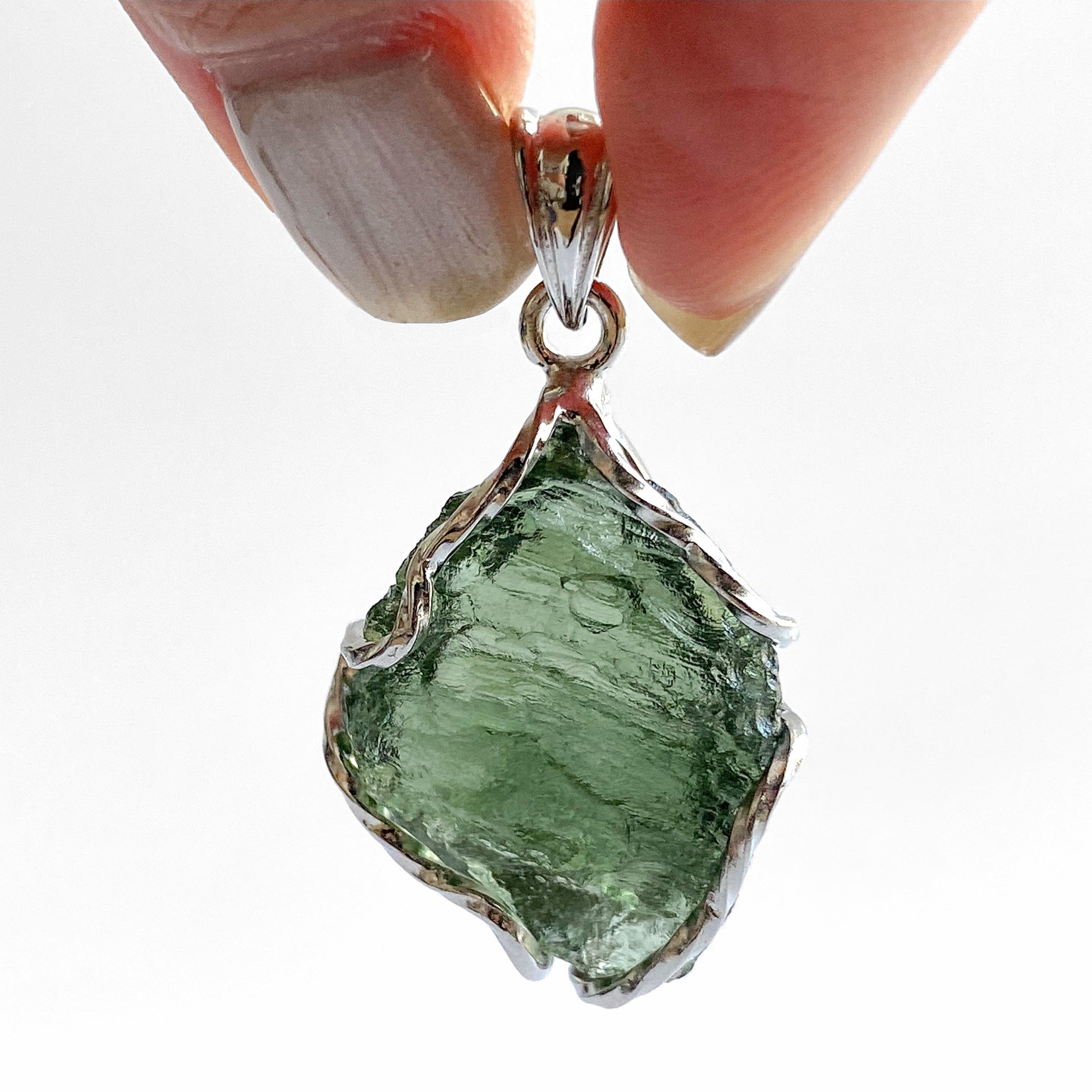 37MM x 21MM MOLDAVITE PENDANT WITH 925 SILVER