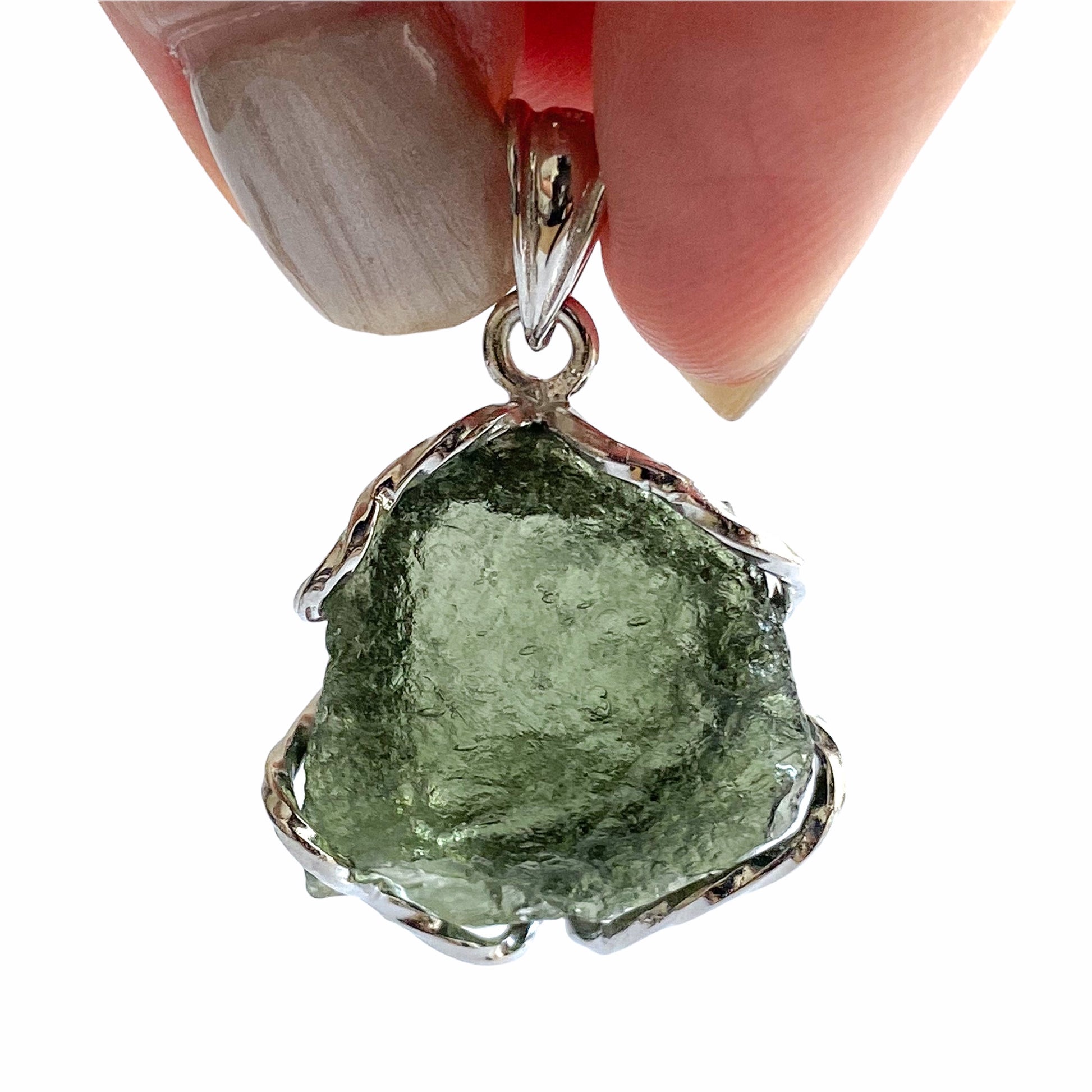 34MM x 22MM MOLDAVITE PENDANT WITH 925 SILVER