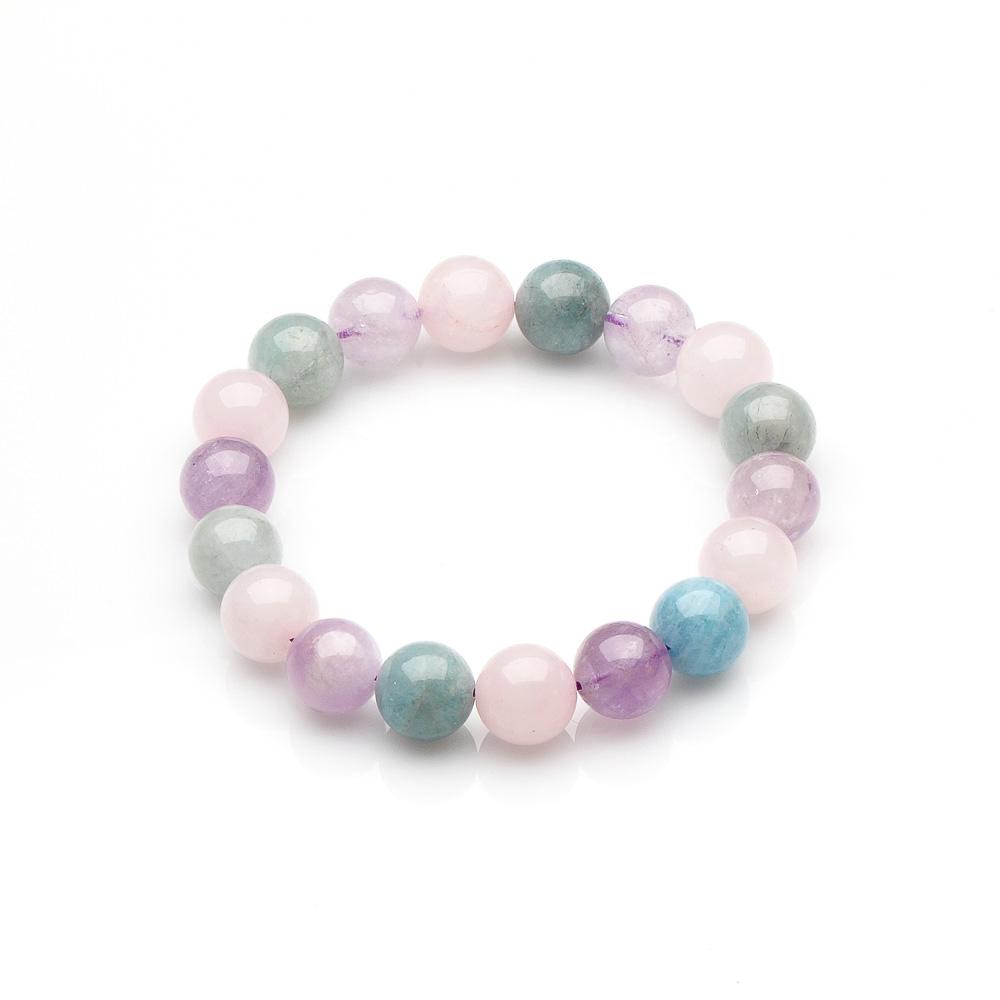 10MM AQUAMARINE , AMETHYST & ROSE QUARTZ BRACELET