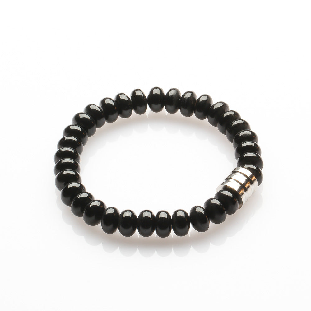 BLACK TOURMALINE AND STAINLESS STEEL BRACELET