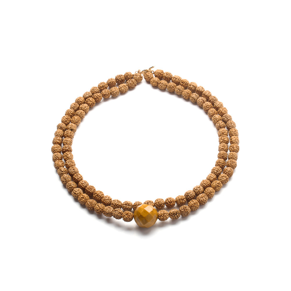 RUDRASKA WOODEN BEADS WITH YELLOW JASPER NECKLACE