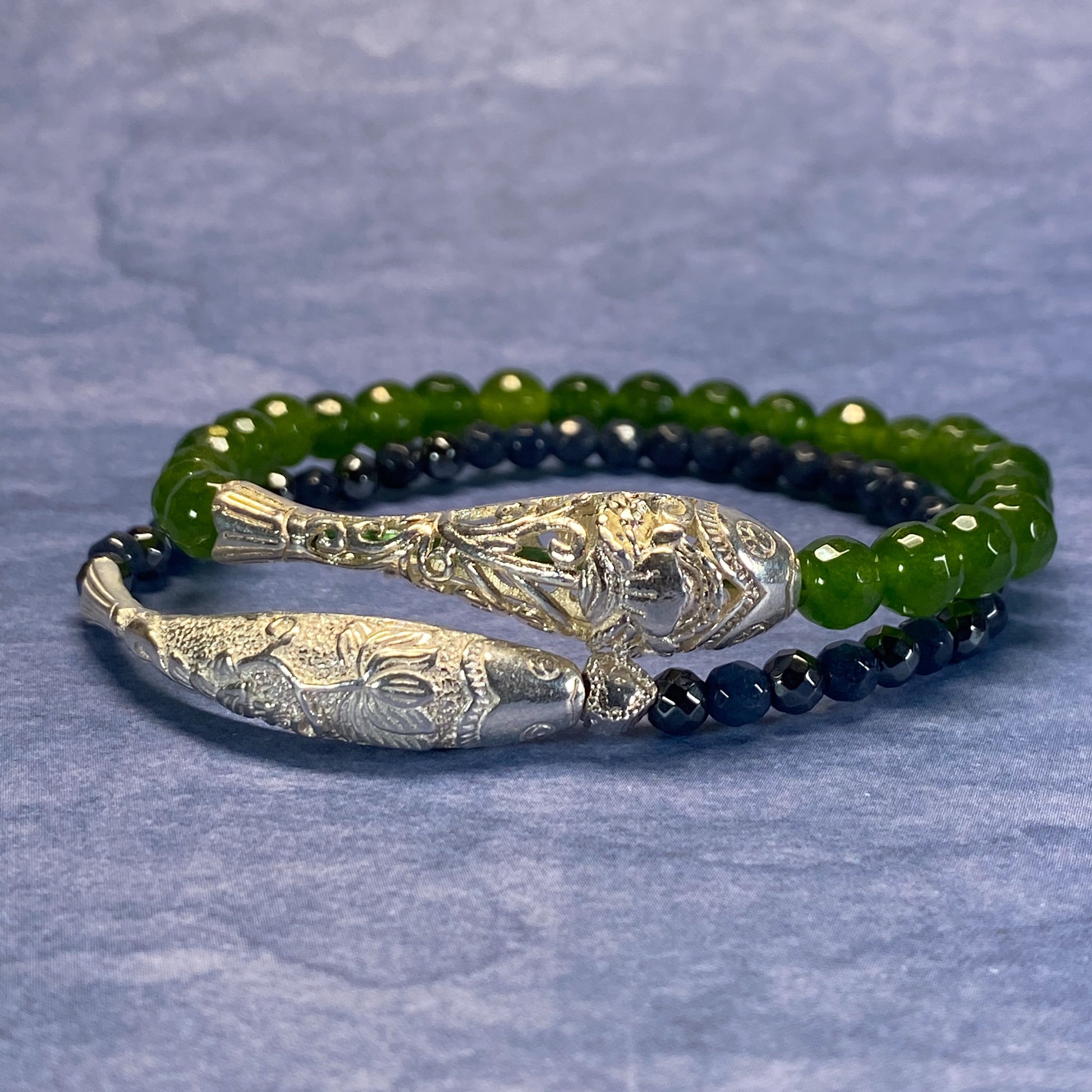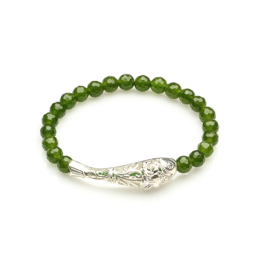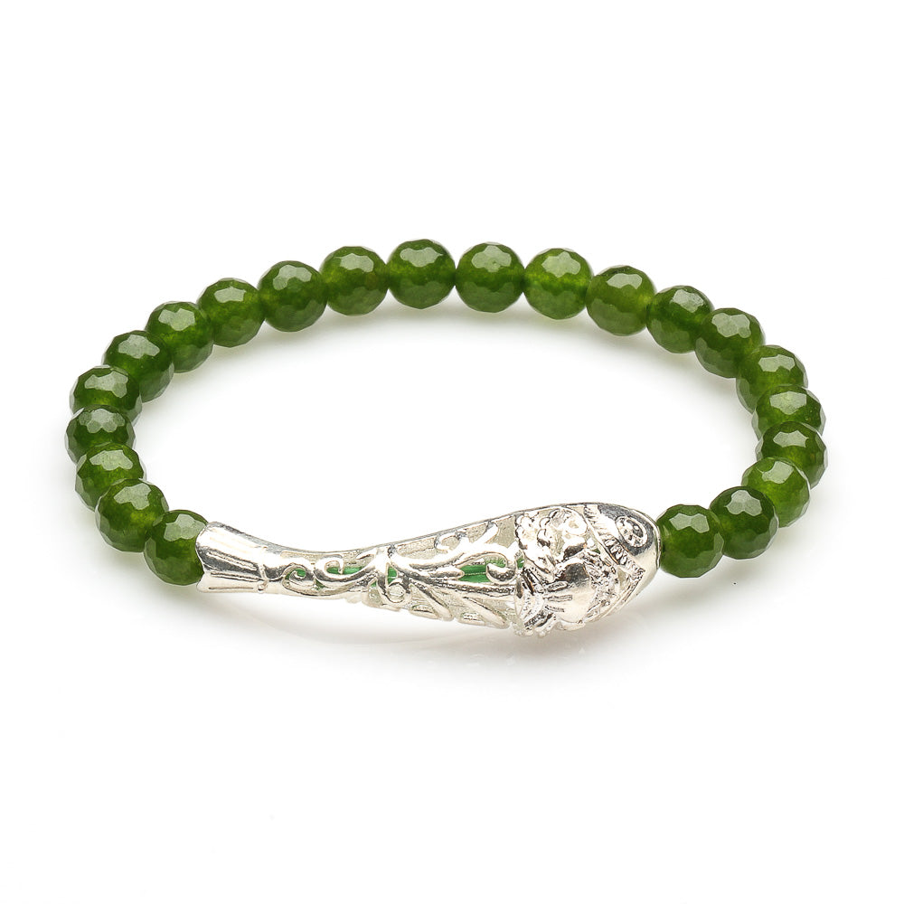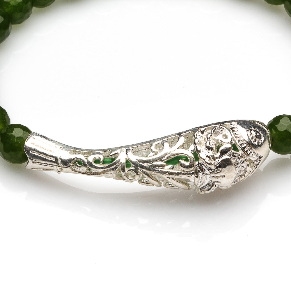 GREEN TAIWANESE JADE WITH 925 SILVER FISH BRACELET