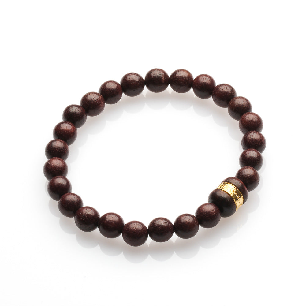 8MM RED SANDALWOOD WITH DRUM WITH GOLD TRIM BRACELET