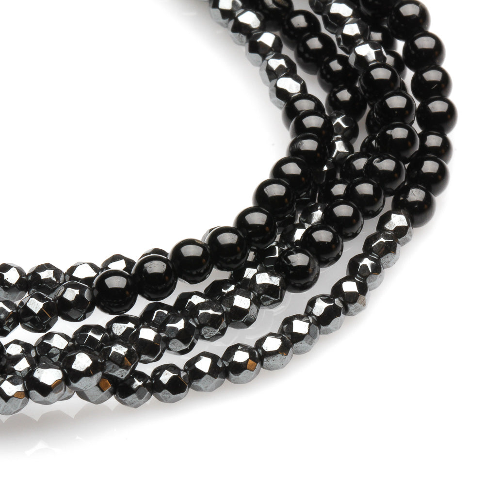 We used: 4mm Faceted Hematite and 4mm Black Tourmaline Beads with Elastic String, Multi Strand Bracelet Style Cum Necklace.