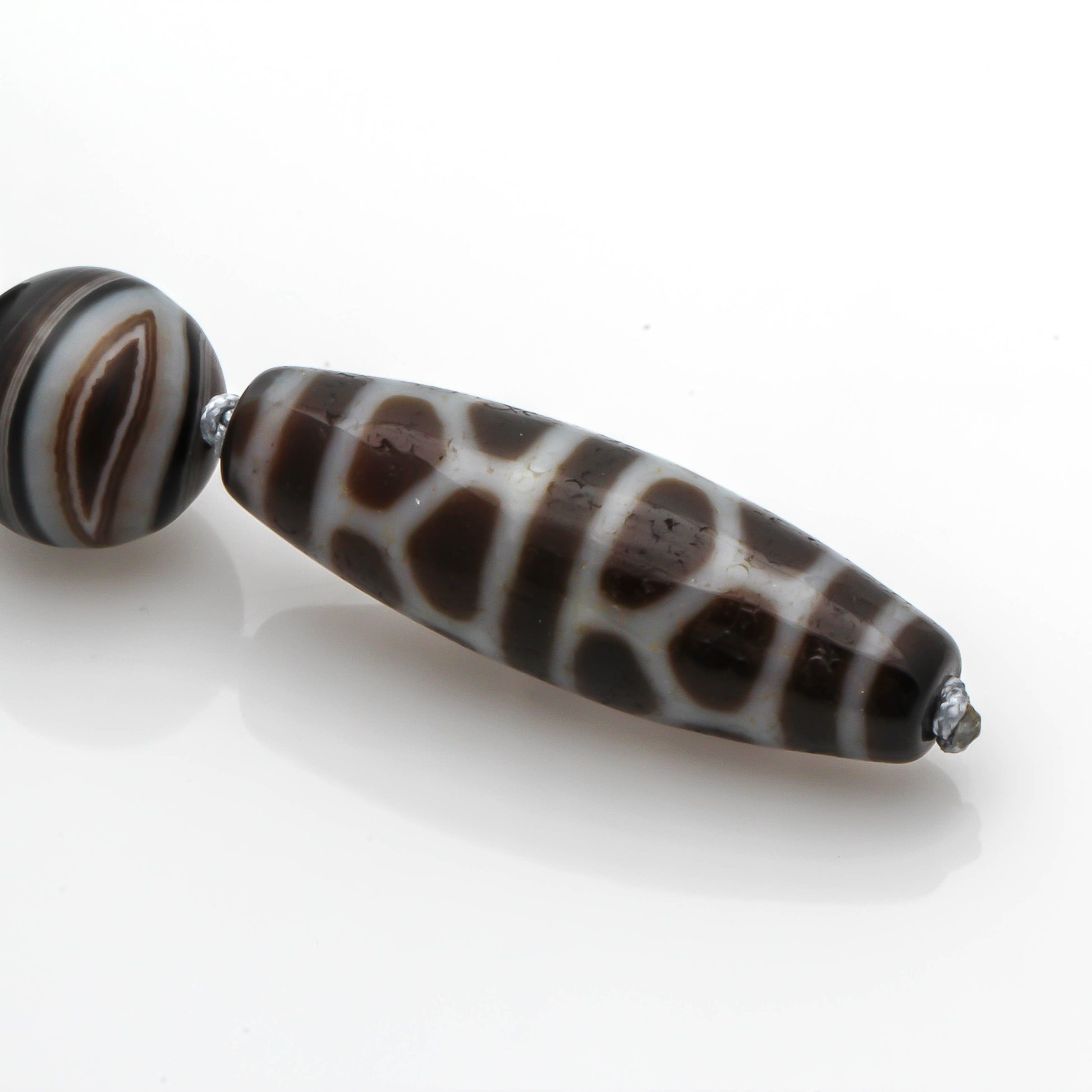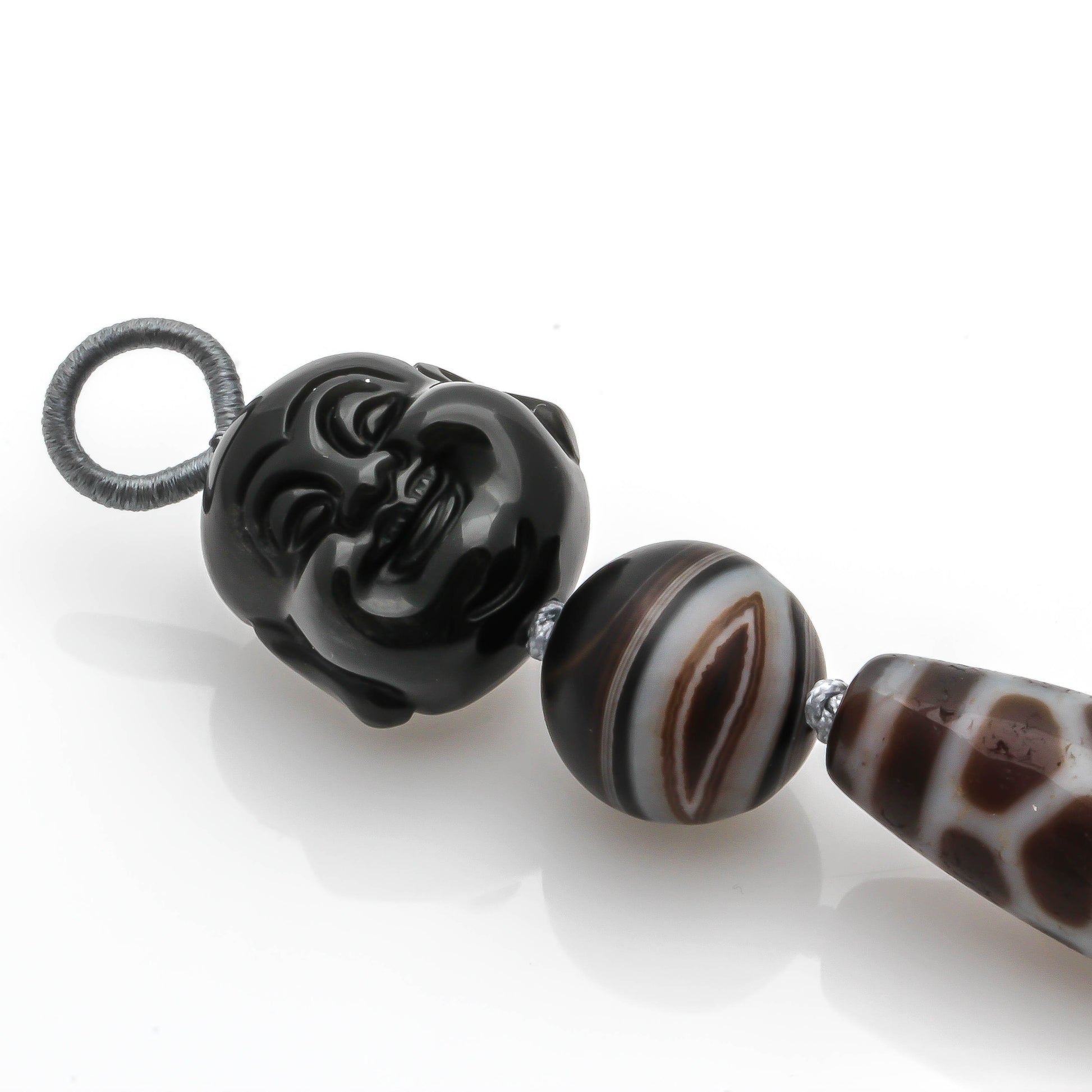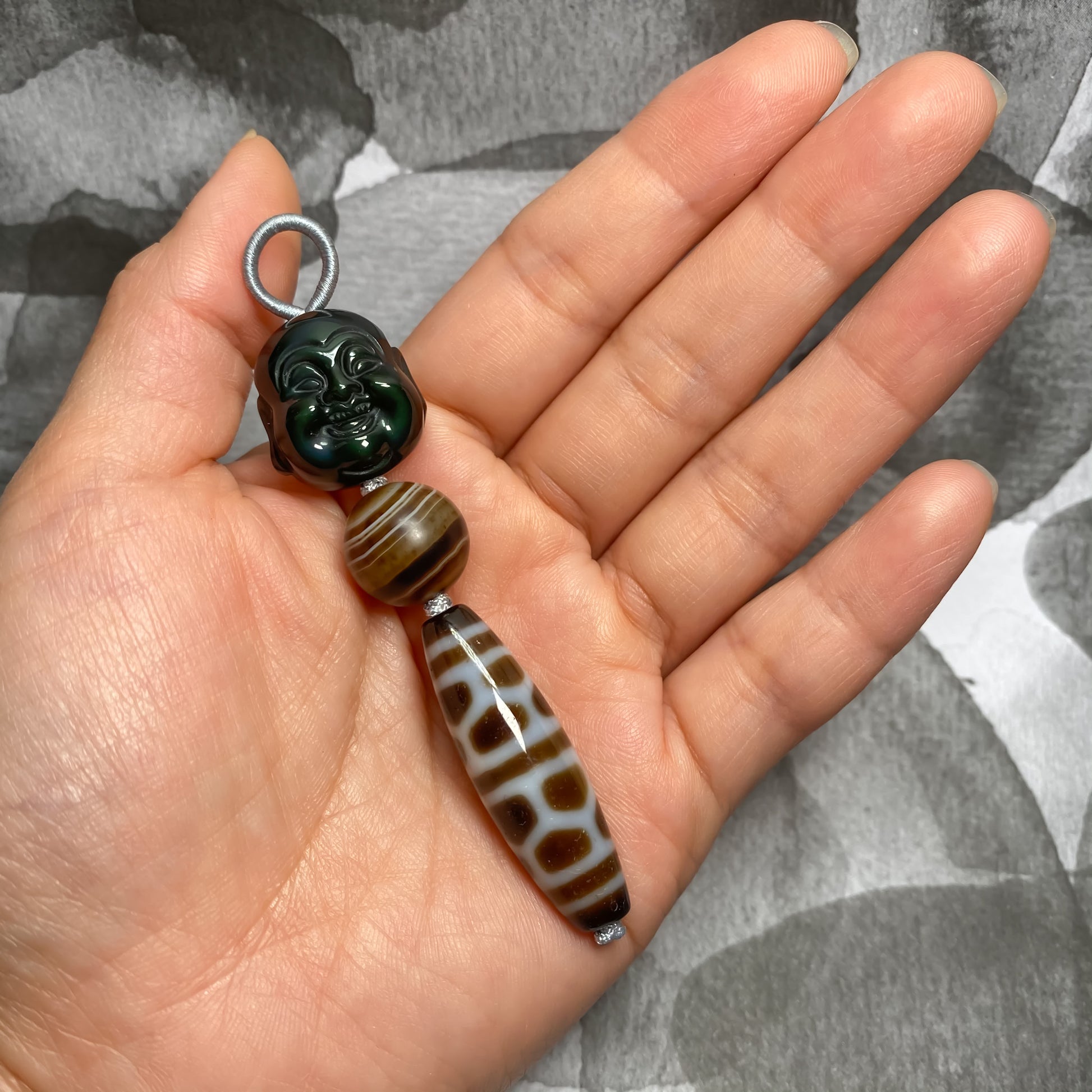 We used: 40mm Tortoise Shell Dzi Bead, 14mm Round Medicine Line Dzi Bead and 20mm Obsidian Laughing Buddha Bead