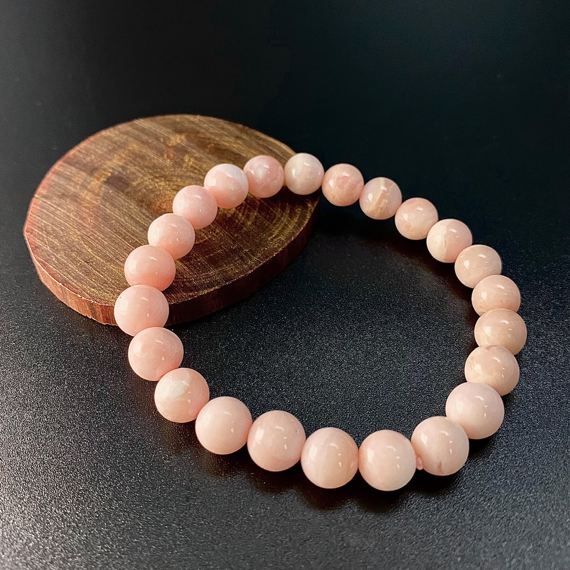 8MM PINK OPAL ROUND BEADS CRYSTAL BRACELET