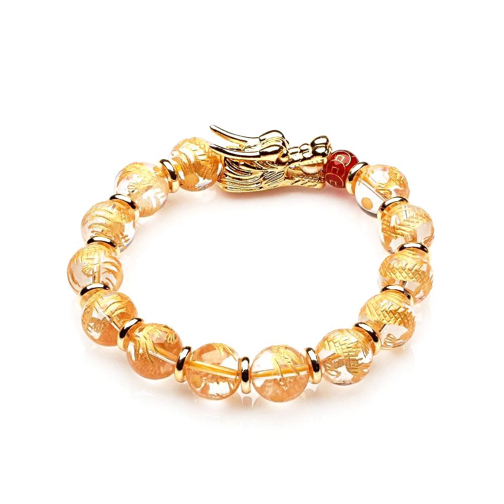 12MM CLEAR QUARTZ WITH GOLD LASER DRAGON BRACELET