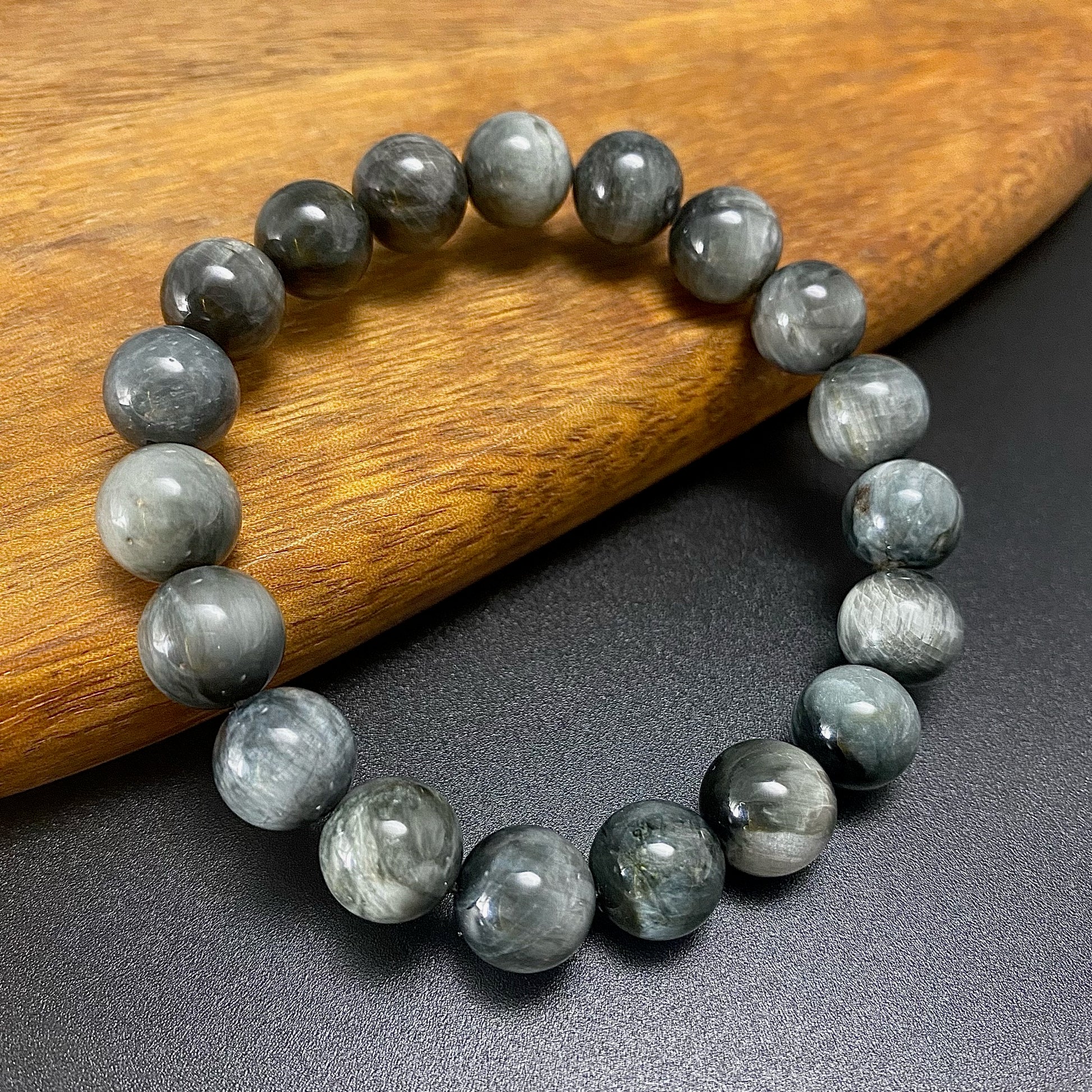 10MM HAWK’S EYE ROUND BEADS CRYSTAL BRACELET