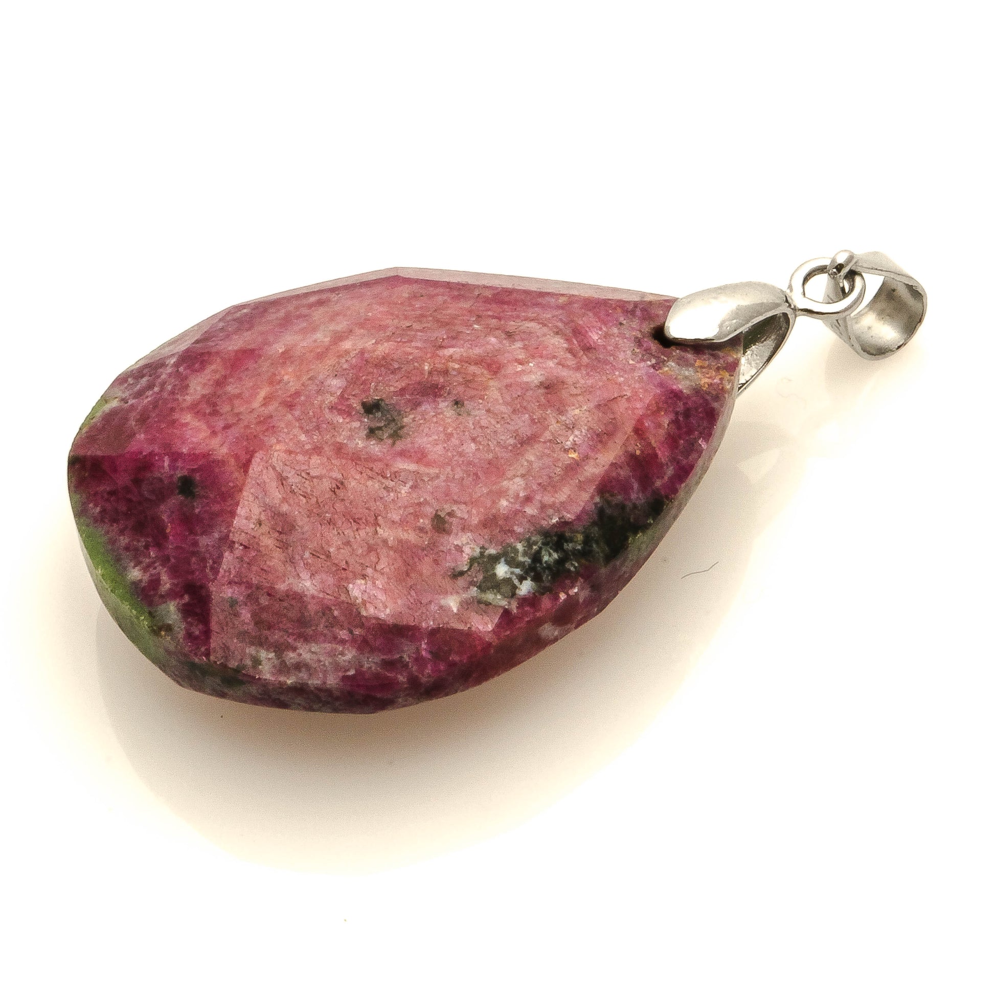 32 x 25 MM FACETED RUBY IN ZOISITE TEARDROP PENDANT