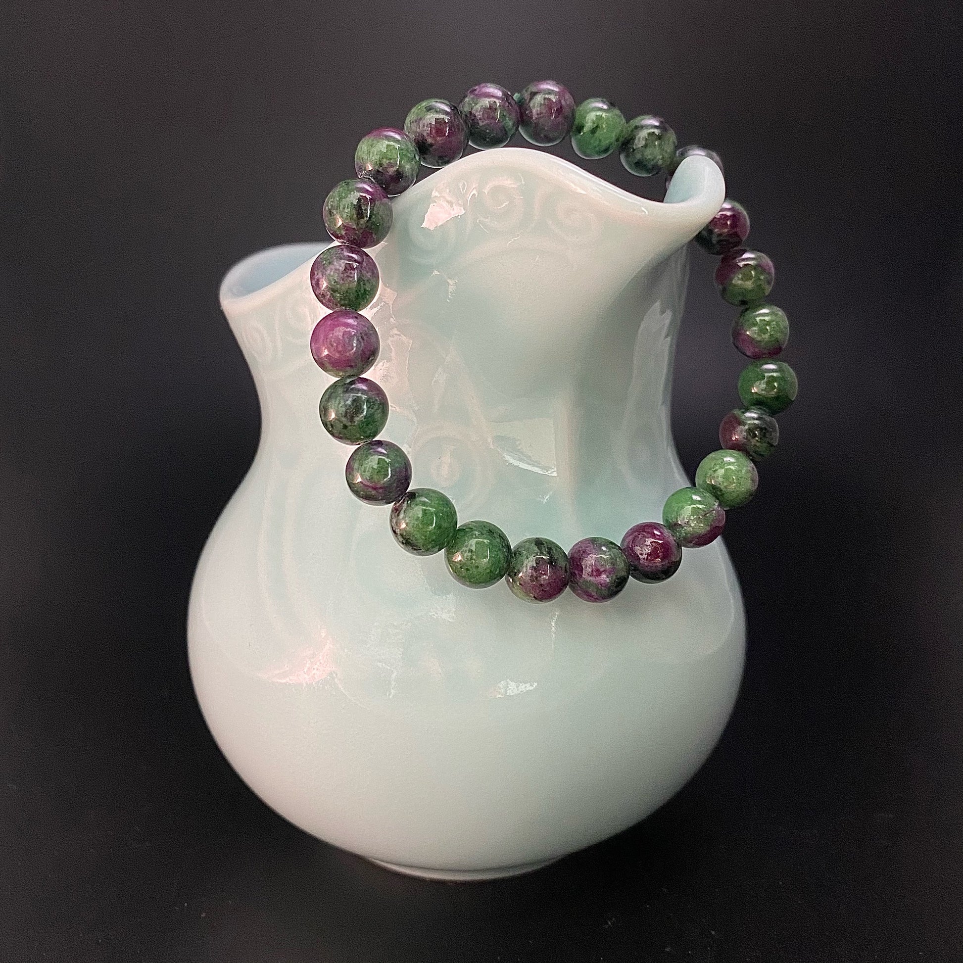 9MM RUBY IN ZOISITE ROUND BEADS CRYSTAL BRACELET