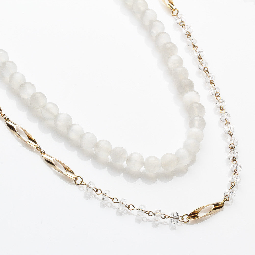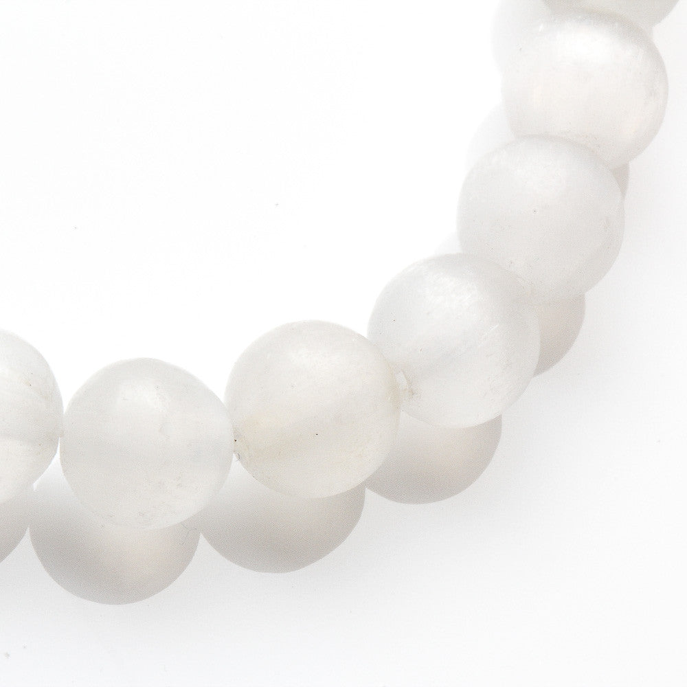 8MM SELENITE WITH 5 X 3 MM CLEAR QUARTZ NECKLACE