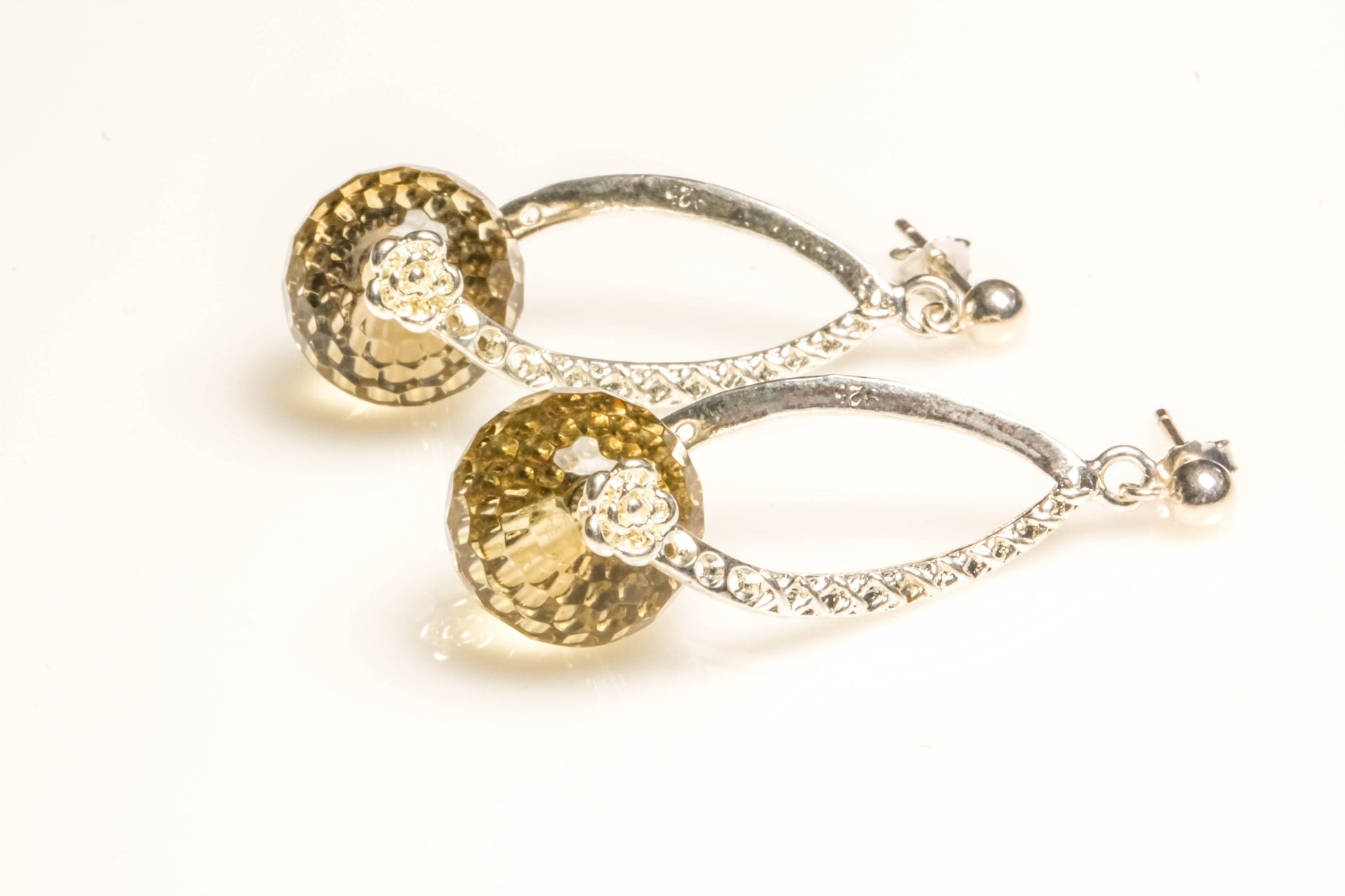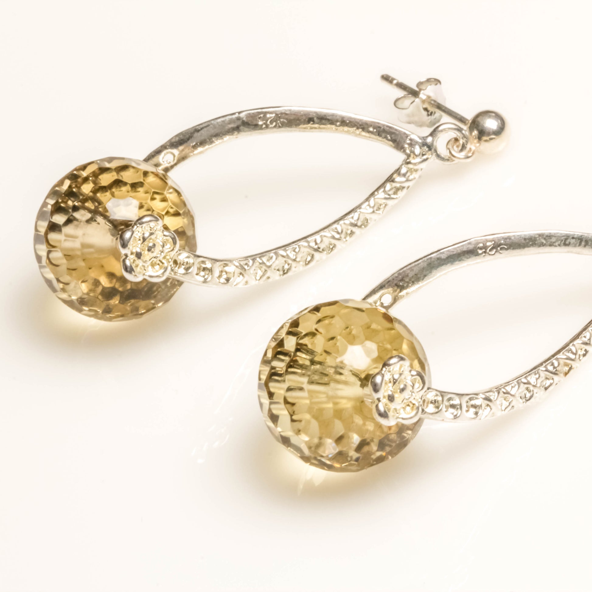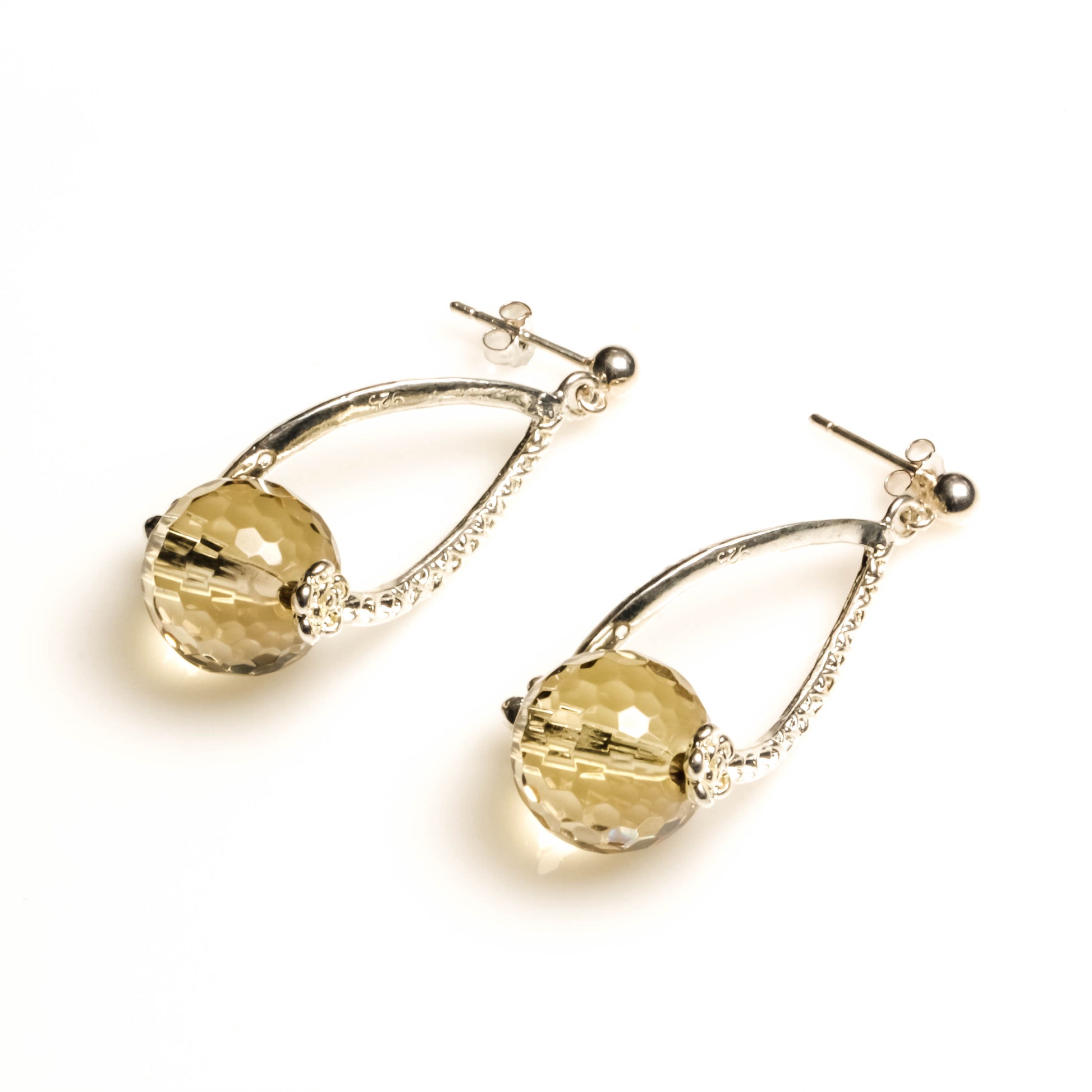 We used: 14mm faceted Lemon Quartz Beads with 925 Silver dangling Earrings