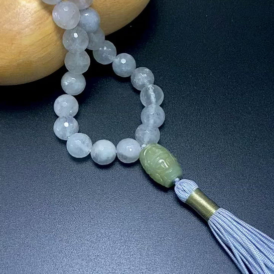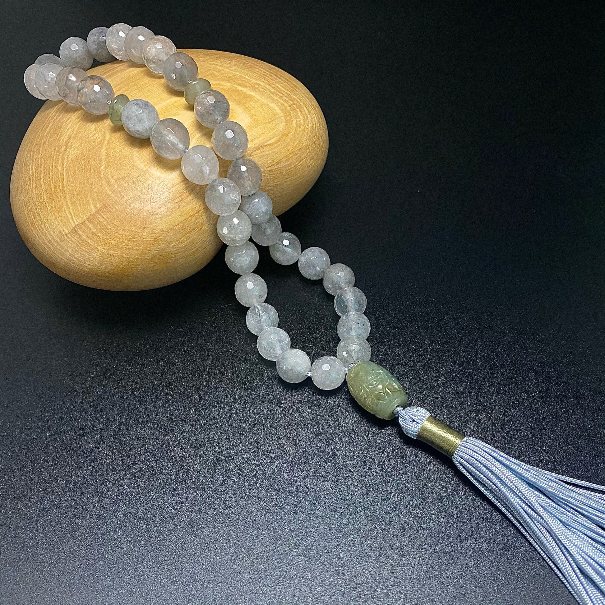 10MM FACETED SMOKY QUARTZ WITH JADE PRAYER BEADS