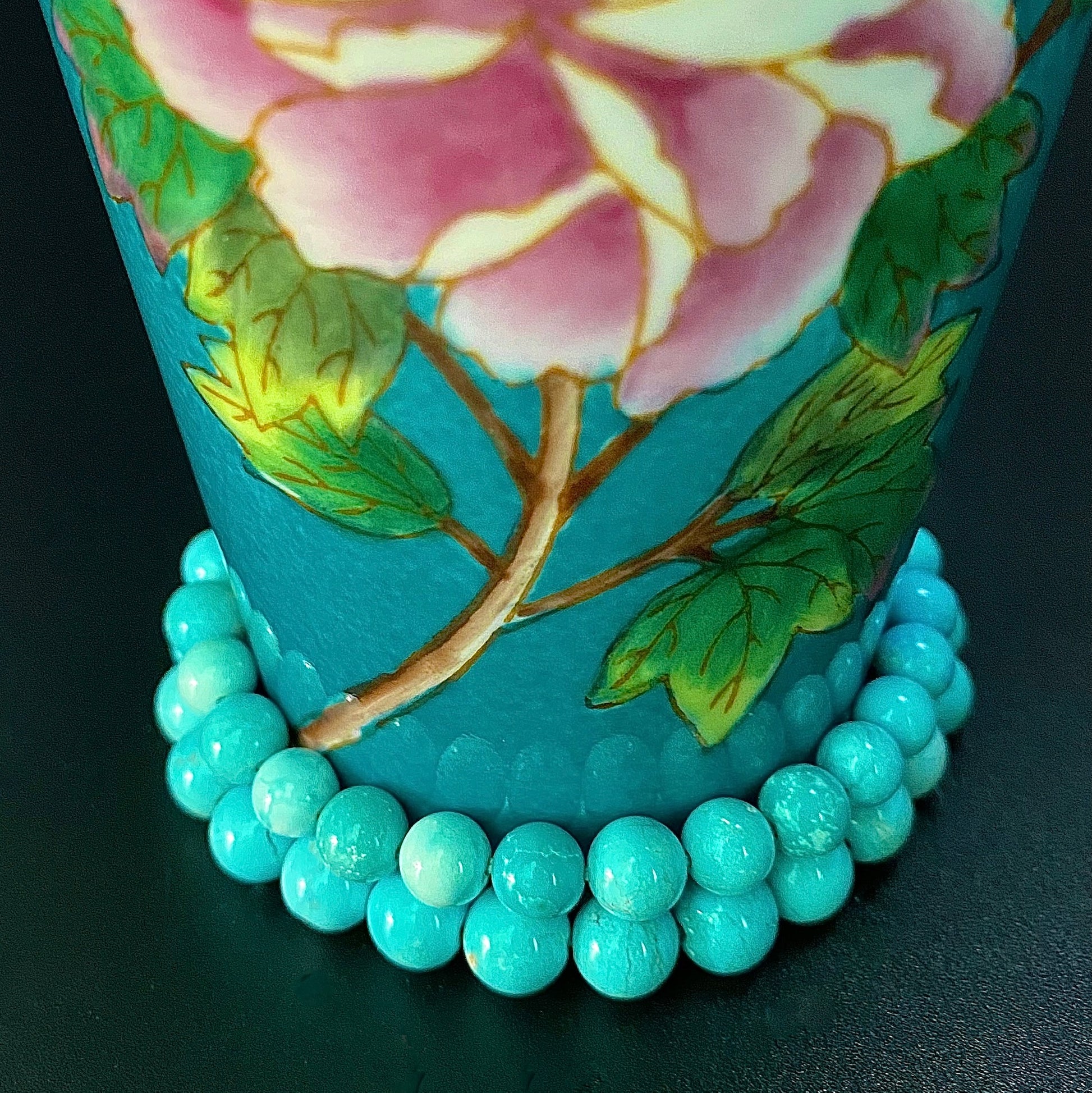 6MM/ 7MM TURQUOISE ROUND BEADS CRYSTAL BRACELET