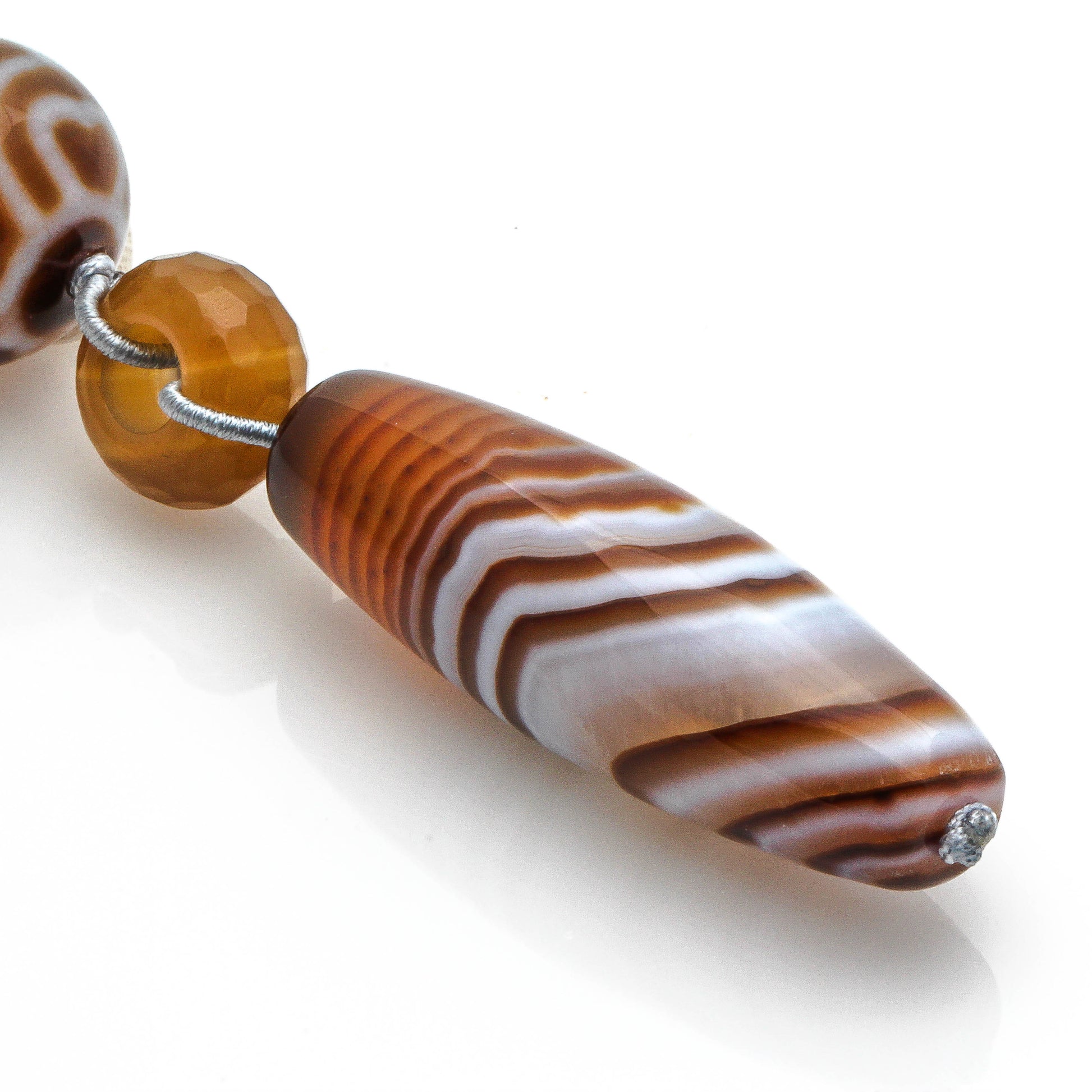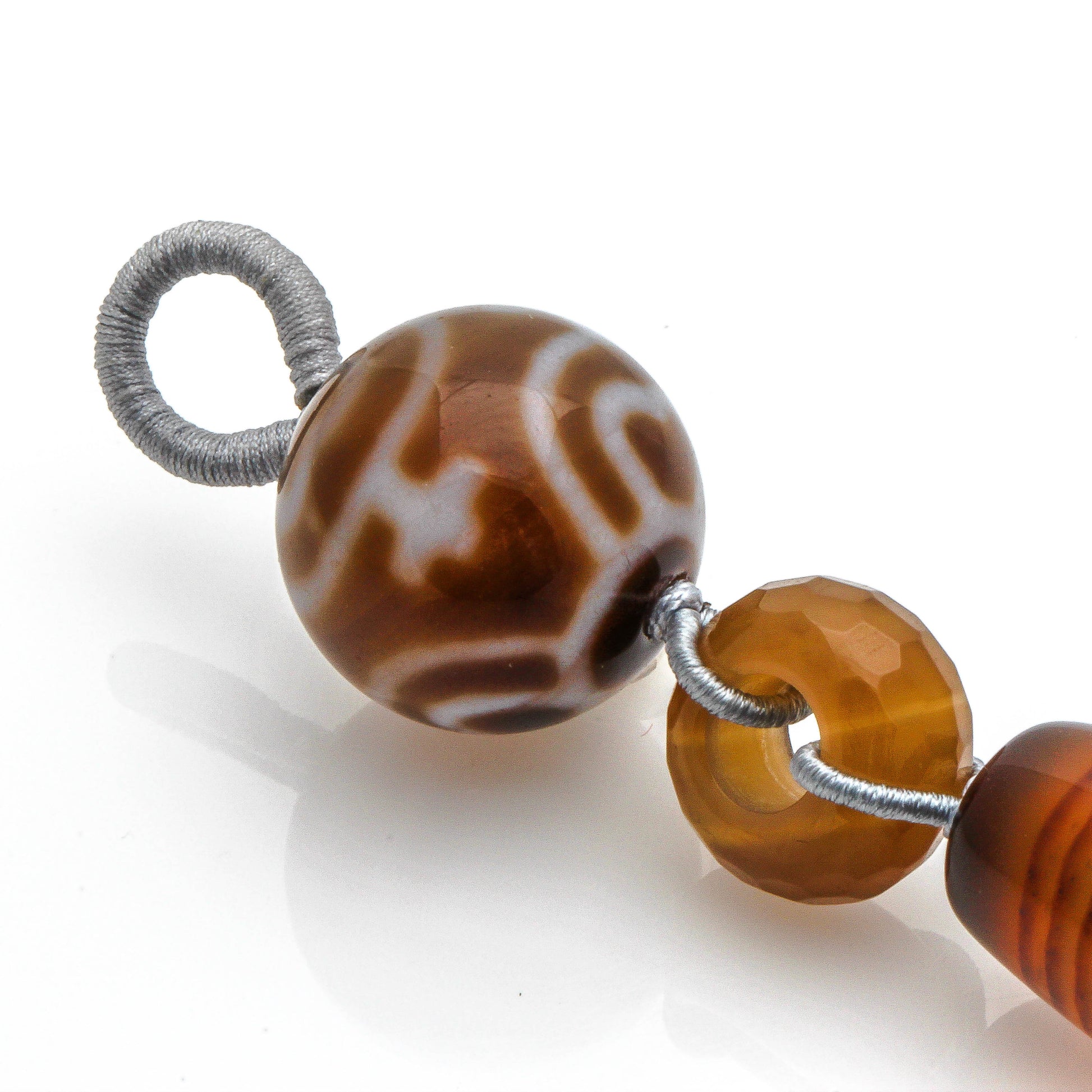 We use: 20mm Treasure Vase Dzi,14mm Faceted Agate Donut Bead and 15x45mm Medicine Agate Dzi
