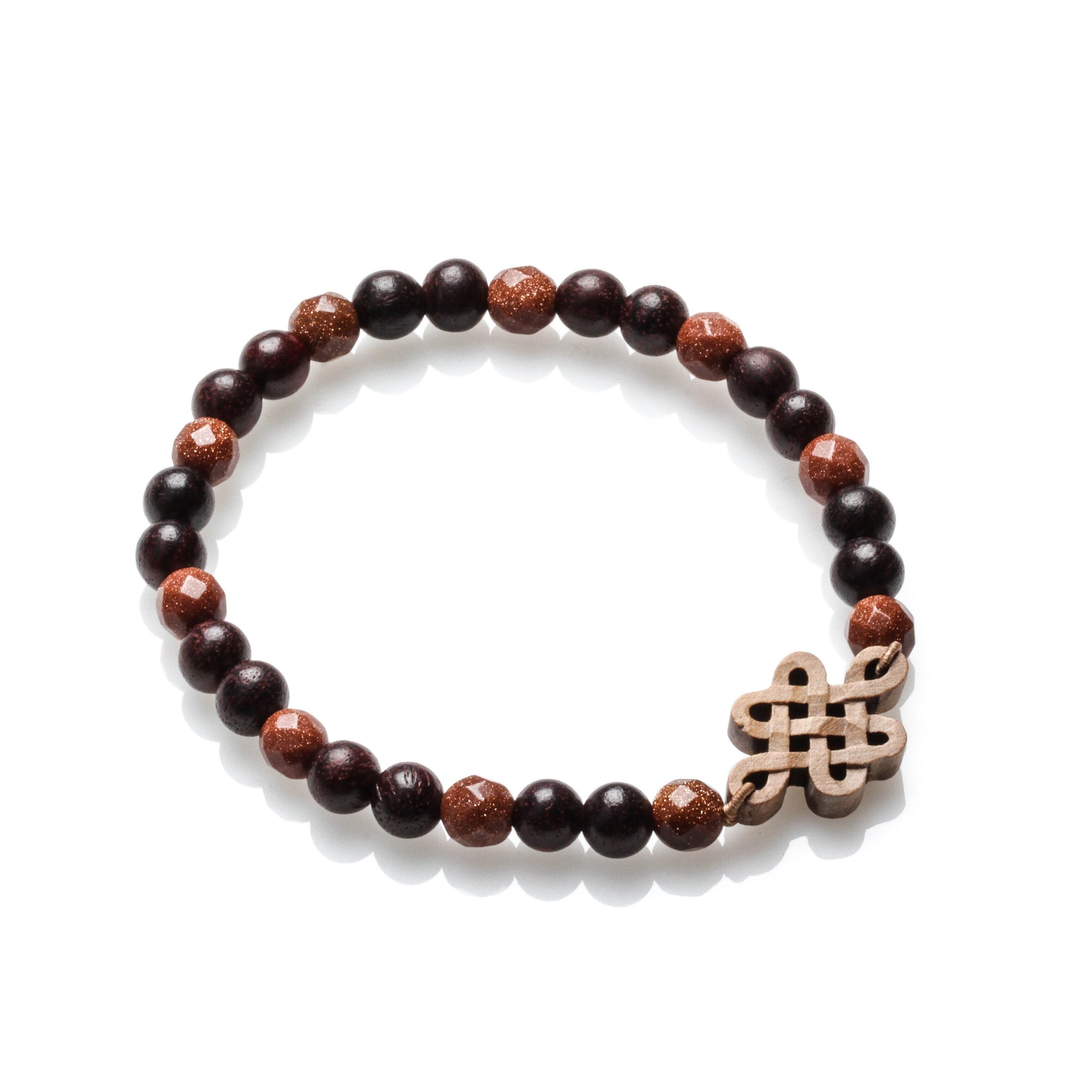 WOODEN BEADS, GOLDEN SANDSTONE, MYSTIC KNOT BRACELET