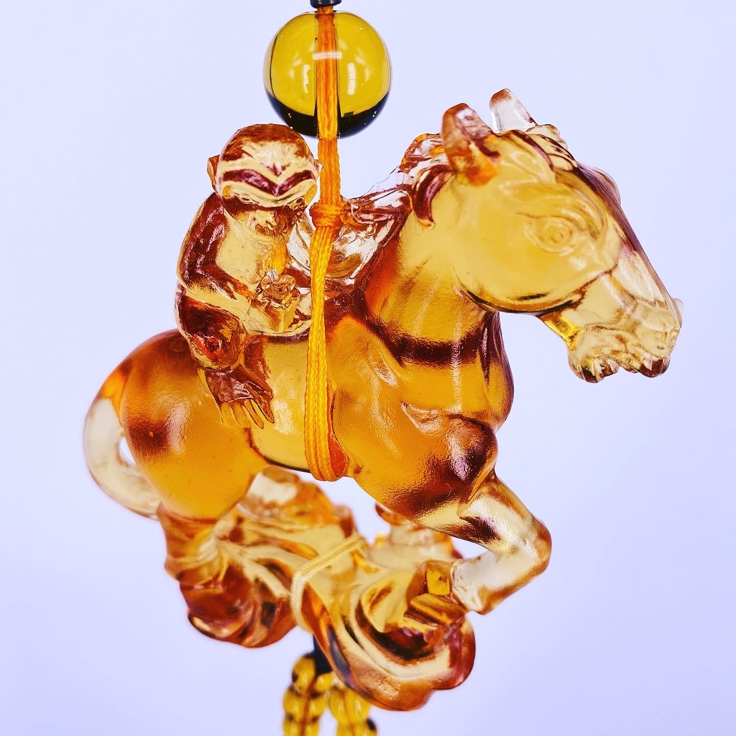 YELLOW LIULI MONKEY ON HORSE CHARM